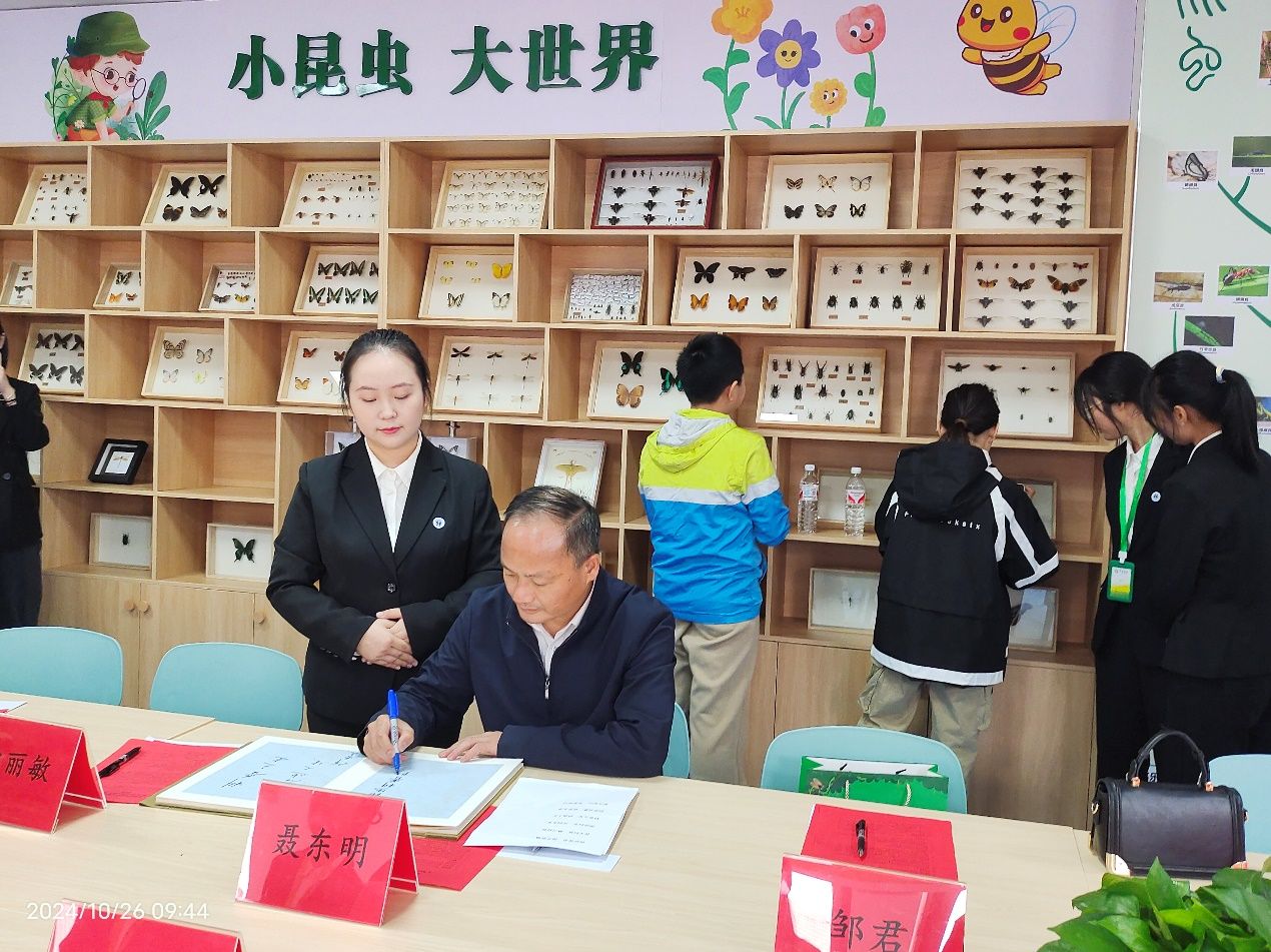 聂东明副校长和何志文馆长共同为“SUNBET申搏官方网站昆虫科普馆”揭牌、邹君处长和龙黎明副校长共同为“科学课程教师联合培养基地”揭牌、陈梅香主任和李焕涛总经理共同为“衡阳市生命科学科普与研学联盟”揭牌。邹君处长、龙黎明副校长、李焕涛总经理分别致辞。