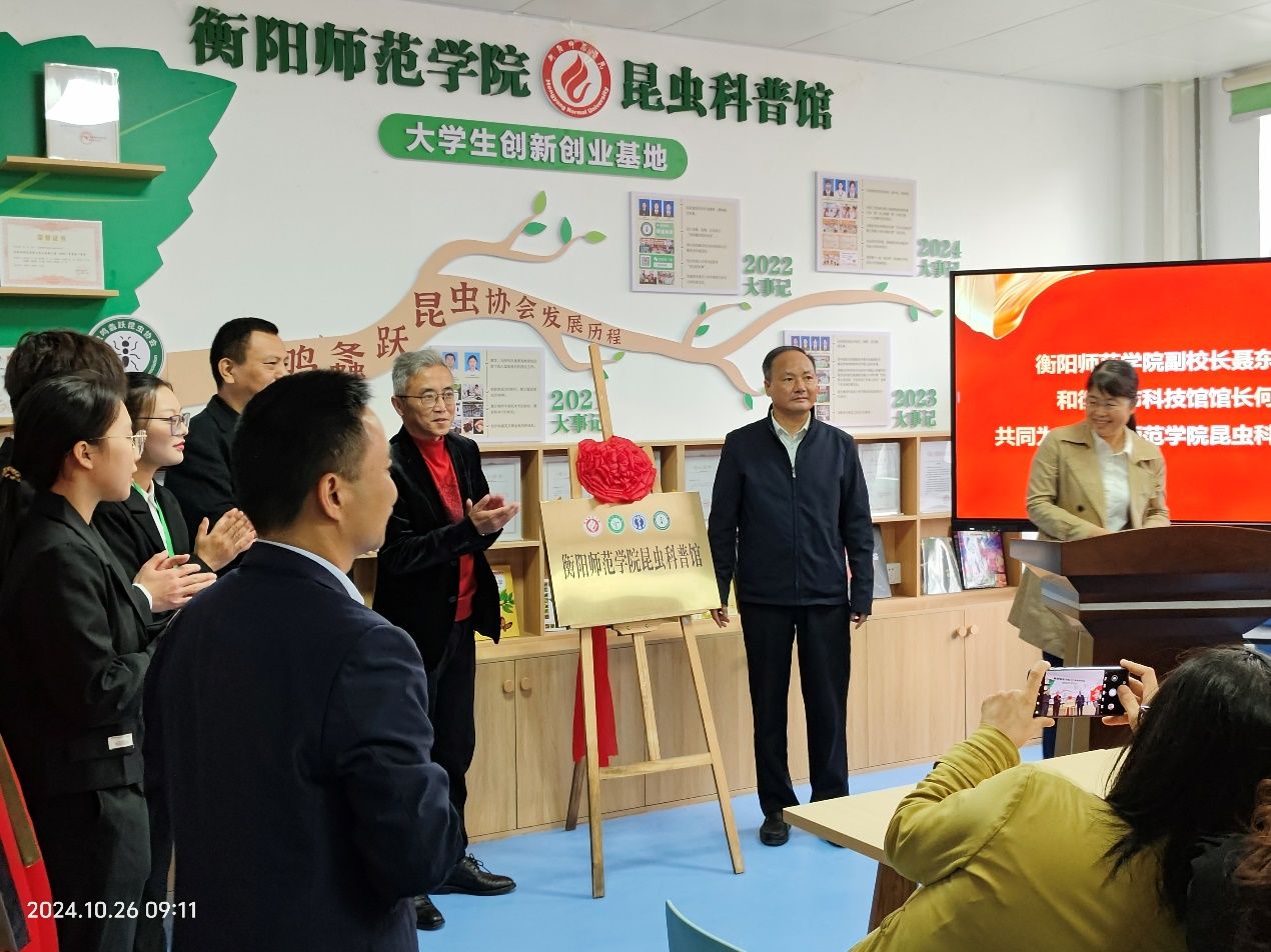 2024 年 10 月 26 日上午,依托SUNBET申搏官方网站生物药物校企联合研发实验室建设的“SUNBET申搏官方网站昆虫科普馆”开馆仪式暨“衡阳市生命科学科普与研学联盟”成立大会在衡阳师范西校区综合实验楼SUNBET申搏官方网站昆虫科普馆隆重举行。