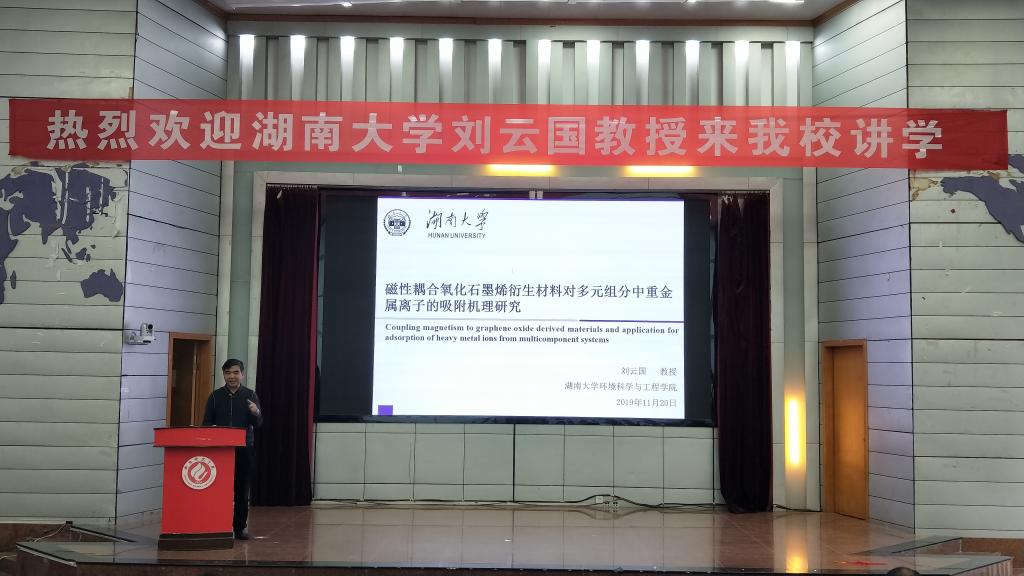 为营造良好的校园学术氛围,加强学科建设,促进学术交流,11月20日下午四点二十,申搏官网特邀湖南大学环境科学与工程学院刘云国教授在西校区学术报告厅做了题为“环境科学与工程研究思路与方法探讨”的学术报告。报告会由生命科学与环境学院院长曹丽敏主持,彭晖书记,易诚、杨海副院长,黄斌艳、罗远来老师及师生代表约200余人聆听了本次讲座。