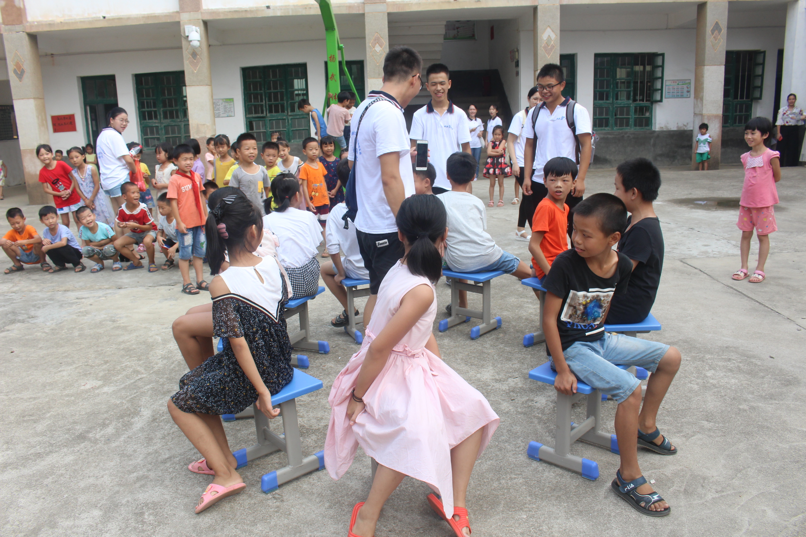 9月4日,“红征筑梦队”第一次来到贺家桥小学。第一天的活动是教孩子们环保知识,带他们做游戏,表演节目。学校老师介绍到,该校大部分学生为留守儿童,家境多贫困。面对初始有些害羞的学生们,志愿者充满耐心、爱心,在操场上做游戏互动时,送上一份份小礼品,气氛便才逐渐变得活跃起来。一天下来,志愿者与学生共同玩耍,相处融洽。