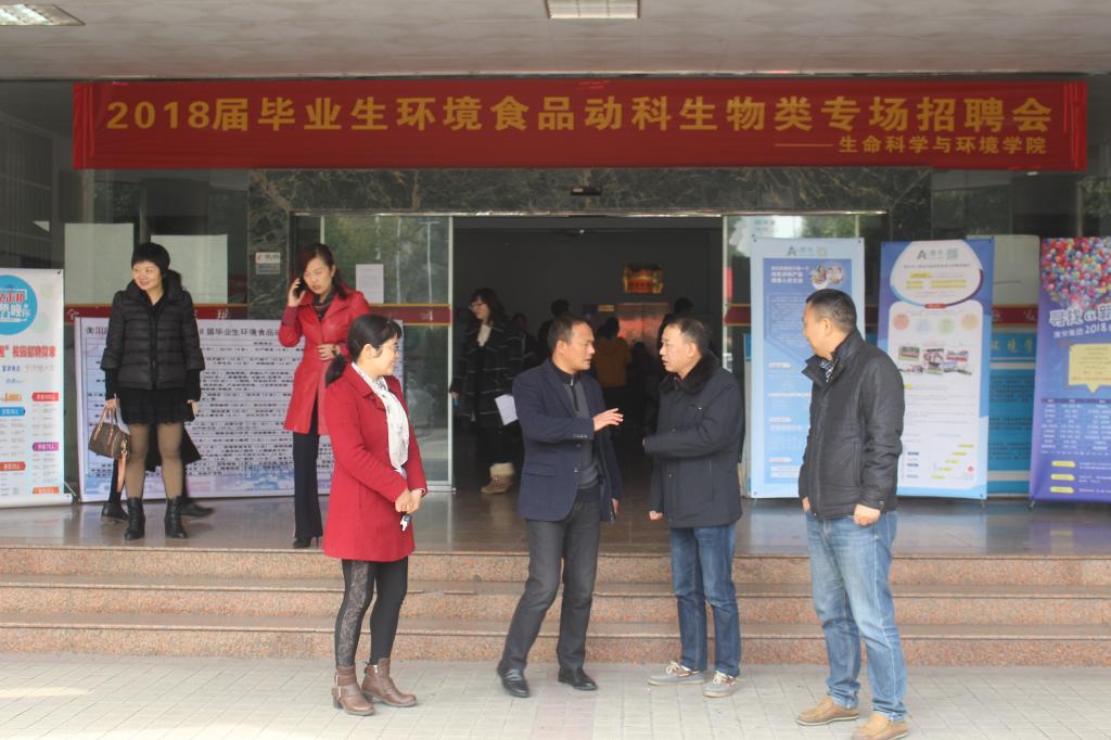 11月23日上午9:00,由SUNBET申搏官方网站招生与就业指导处主办,生命科学与环境学院、南岳学院承办的2018届毕业生环境食品动科生物类行业性招聘会在西校区物电楼成功举行。副校长聂东明、招生与就业指导处处长唐艳亲临现场指导,生命科学与环境学院党总支书记刘艳波、院长曹丽敏等到现场组织协调。
