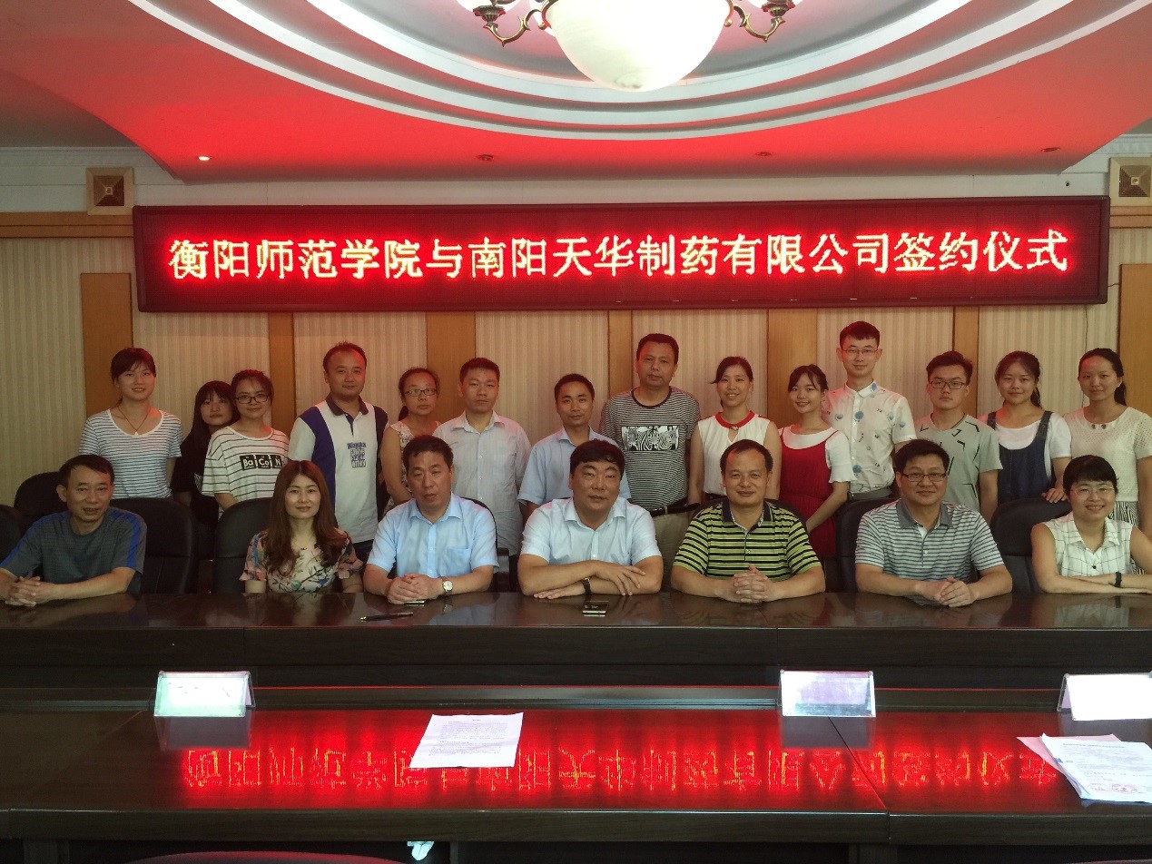 2017年7月13日上午,SUNBET申搏官方网站与南阳天华制药有限公司签约仪式在西校区办公楼会议室举行。南阳天华制药有限公司董事长王峰、总经理孙国印、SUNBET申搏官方网站副校长陈敏、人事处处长尹季、转型发展办主任陈梅香、生命科学与环境学院党总支书记刘艳波、院长曹丽敏、副院长易诚以及在校专业教师和学生出席签约仪式。曹丽敏院长主持签约仪式。