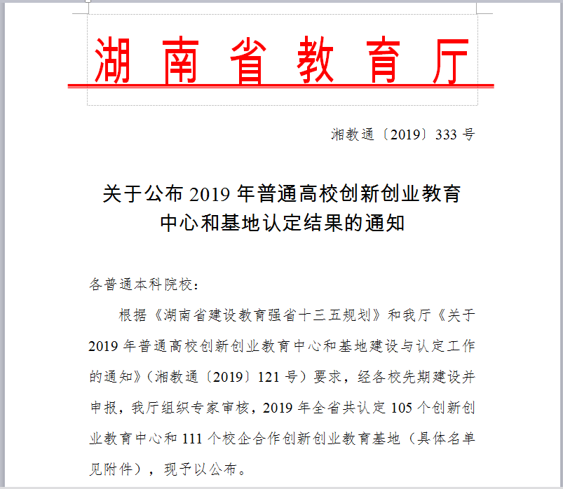 喜讯:经申搏官网积极组织申报,湖南省教育厅组织专家认真评审,2019年申搏官网新增3个省级创新创业教育中心和3个省级校企合作创新创业教育基地:其中曹丽敏院长负责的《SUNBET申搏官方网站生物技术校企合作创新创业教育基地》被湖南省教育厅认定为省级校企合作创新创业教育基地,这是申搏官网省级平台项目的首次突破,也祝愿申搏官网师生勠力同心,学院事业蒸蒸日上!