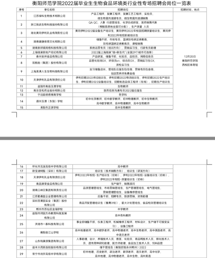 为使同学们尽快融入社会,加强自身专业技能,提高自身专业知识与工作实习的契合度,并找到自己满意的工作和位置,同时为2022届毕业生联系实习单位准备,申搏官网特举办生物食品类行业性专场招聘会。
