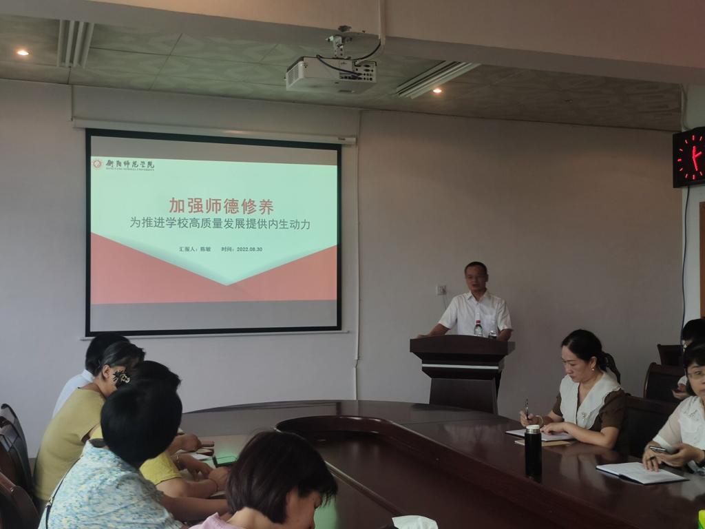8月30日上午,陈敏副校长为全院教师做关于《加强师德修养——为推进学校高质量发展提供内生动力》的报告,陈校长的党课具有理论高度、认识深度,要求申搏官网全体教师要做好师德师风表率,推动学校高质量发展。紧随陈校长步伐,曹书记接下来做了《深入学习践行<新时代高校教师职业行为十项准则>》的报告,老师们纷纷表示要继续立足教书育人本职工作,做好学生的引路人。
