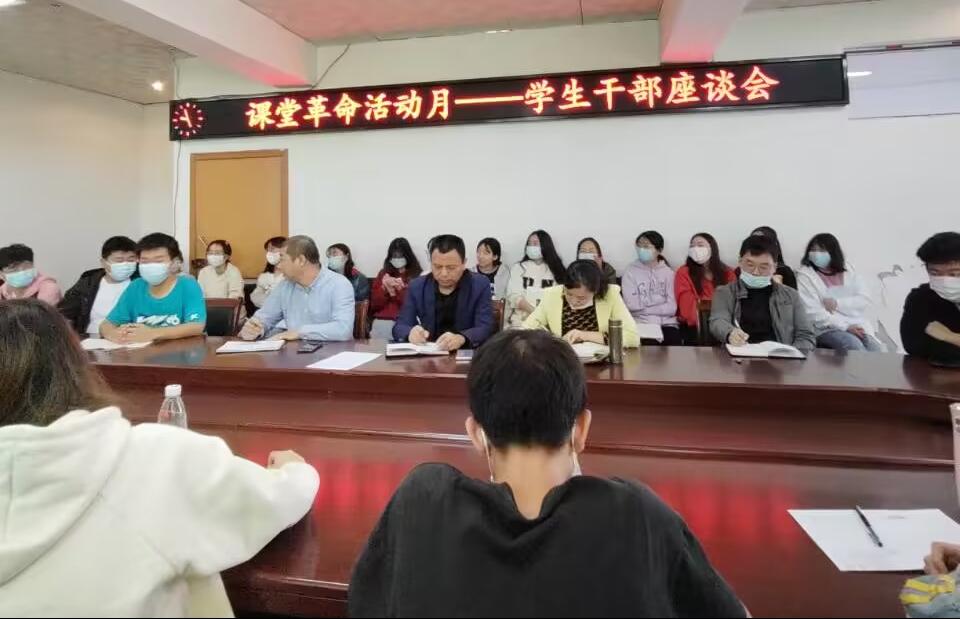 紧接着,到会的学生干部们依次轮流发言,就班级建设、课堂教学、实习实训和学院教学管理等话题为学院建设和发展建言献策,现场气氛轻松融洽。针对同学们在学习和生活中遇到的问题和提出的建议,与会老师认真倾听、详细记录。