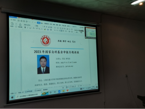 上海交通大学医学院附属瑞金医院普外科、胰腺疾病研究所符达研究员于2022年11月30日16:00通过腾讯会议的网络平台对SUNBET申搏官方网站教师进行了国家自科基金申报专题讲座。讲座内容涉及国家自然科学基金申报现状、申请前的准备与思路整理、基金写作的总体要求、指导与评审体会等方面。