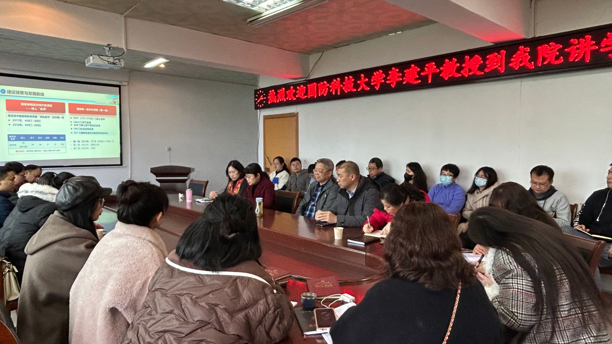 为推动学院专业发展和课程建设,加快学院国家级一流课程的培育和建设,3月25日下午,申搏官网特邀国防科技大学李建平教授在千禧楼会议室开展了一场题为“国家级一流本科课程的建设”的精彩讲座,党总支书记曹丽敏、副书记陈雅斐、副院长杨海、陈晓华以及全体教师参会。