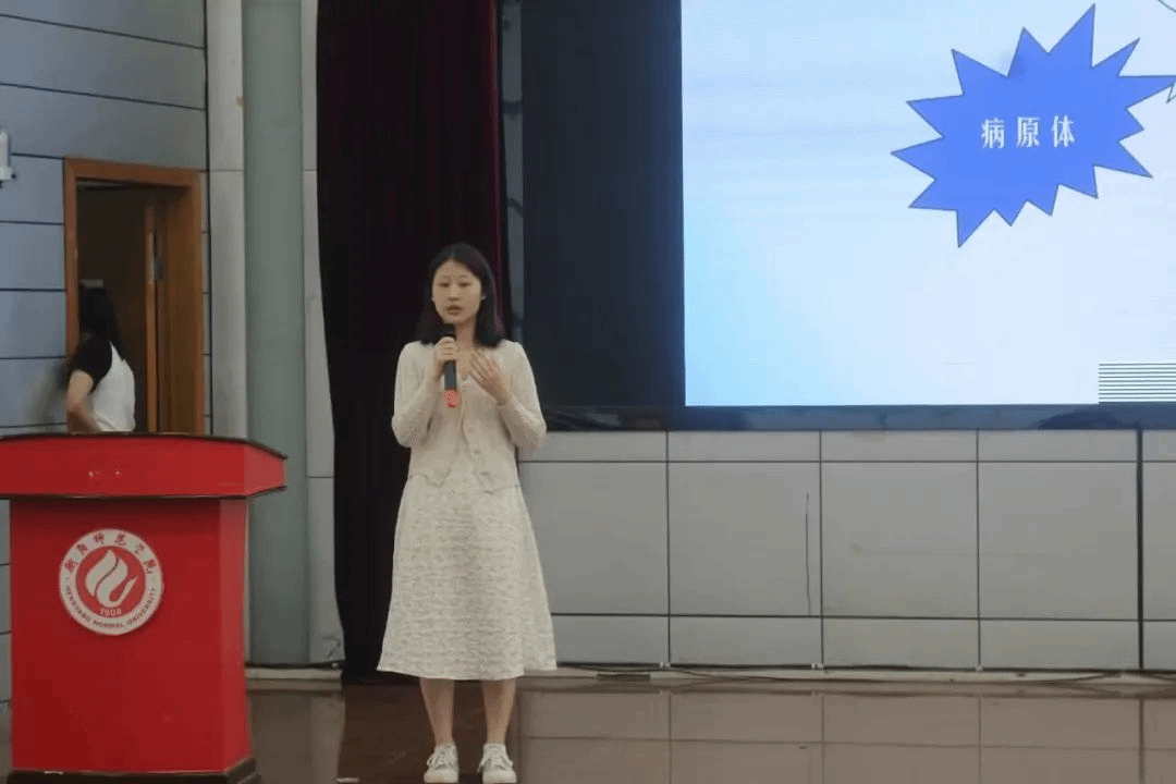 本届大赛通过教育问答以及片段教学的形式进行。参赛选手首先随机抽取问题,现场回答与教育教学、班级管理工作相关的问题,随后根据抽取的知识点开始现场片段教学,在教育问答环节中,选手们回答随机抽取的问题时从容不迫,条理清晰,赢得现场热烈掌声。片段教学环节中,选手们以铿锵有力的语言,自信从容的姿态,展现其扎实的基本功。