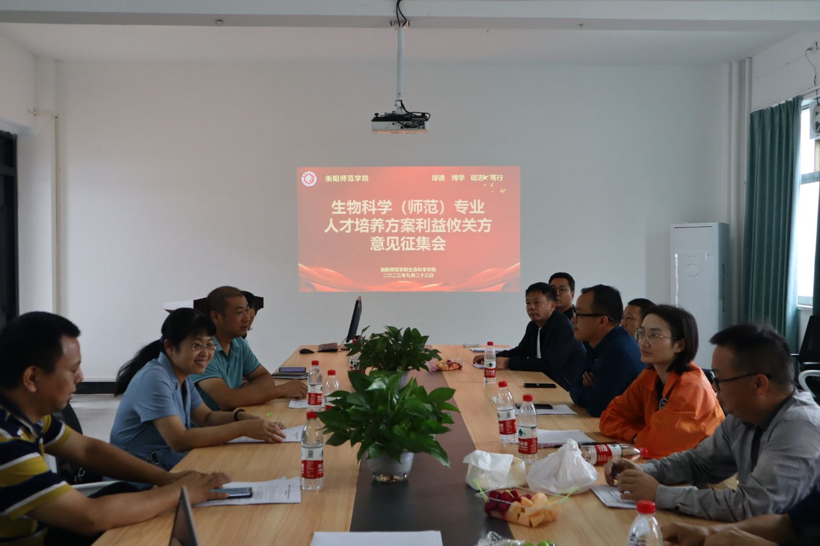 为全面提高师范人才培养质量,深化人才培养改革,2023年9月23日8:30,SUNBET申搏官方网站在综实楼601室召开生物科学(师范)专业2023版人才培养方案审议会议、意见征集会和新时代初中生物实验课程体系的构建与实施项目研讨会。会议由杨海副院长主持,学院党总支书记曹丽敏、院长易诚、副书记陈雅斐、副院长陈晓华,系主任唐兴、王帅博士、刘健晖老师,衡阳市成章实验中学、衡阳市一中、衡南县一中等中学骨干教师代表参与本次会议。