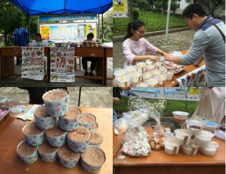 2018年5月12-13日,生命科学与环境学院“爱尚美食,幸福每时每刻”暨第五届校园美食文化节在SUNBET申搏官方网站西校区成功举行。此次活动中,申搏官网食品俱乐部同学在食品专业老师的指导下,将专业知识与实习实践相结合,精心准备了多种美食,如蛋糕、奶茶、发酵糙米乳、砵仔糕、牛轧糖、曲奇饼干等。其中,发酵糙米乳是科技创新项目研发成果,牛轧糖是专业实习后改进工艺研发的新产品,曲奇饼干是工艺实验课程和科研训练研发的成果。活动现场,纯手工制作的美食格外诱人,吸引了大批“吃货”驻足品尝咨询。