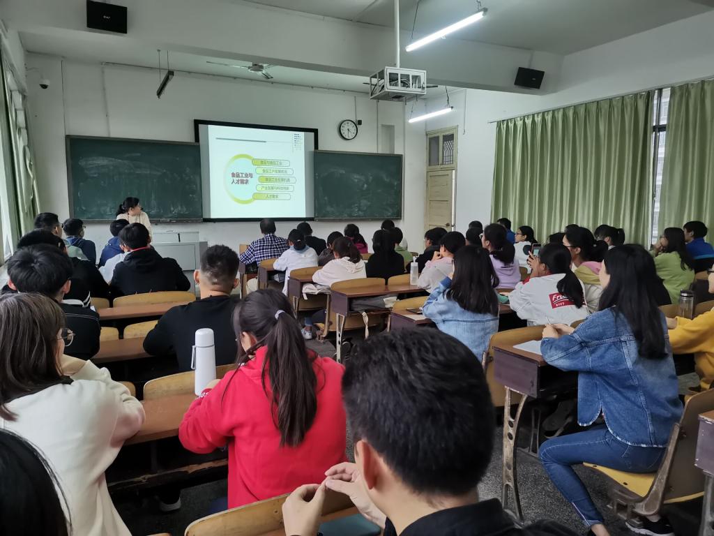 她还指出二十一世纪的今天,发展靠的的创新,是科技。对于食品的包装,深度利用还在不断研究中。食品工业人才也是供不应求,她详细介绍了视频专业的资格证书与中国龙头食品企业,帮助食品专业学生了解现在的专业招聘情况。