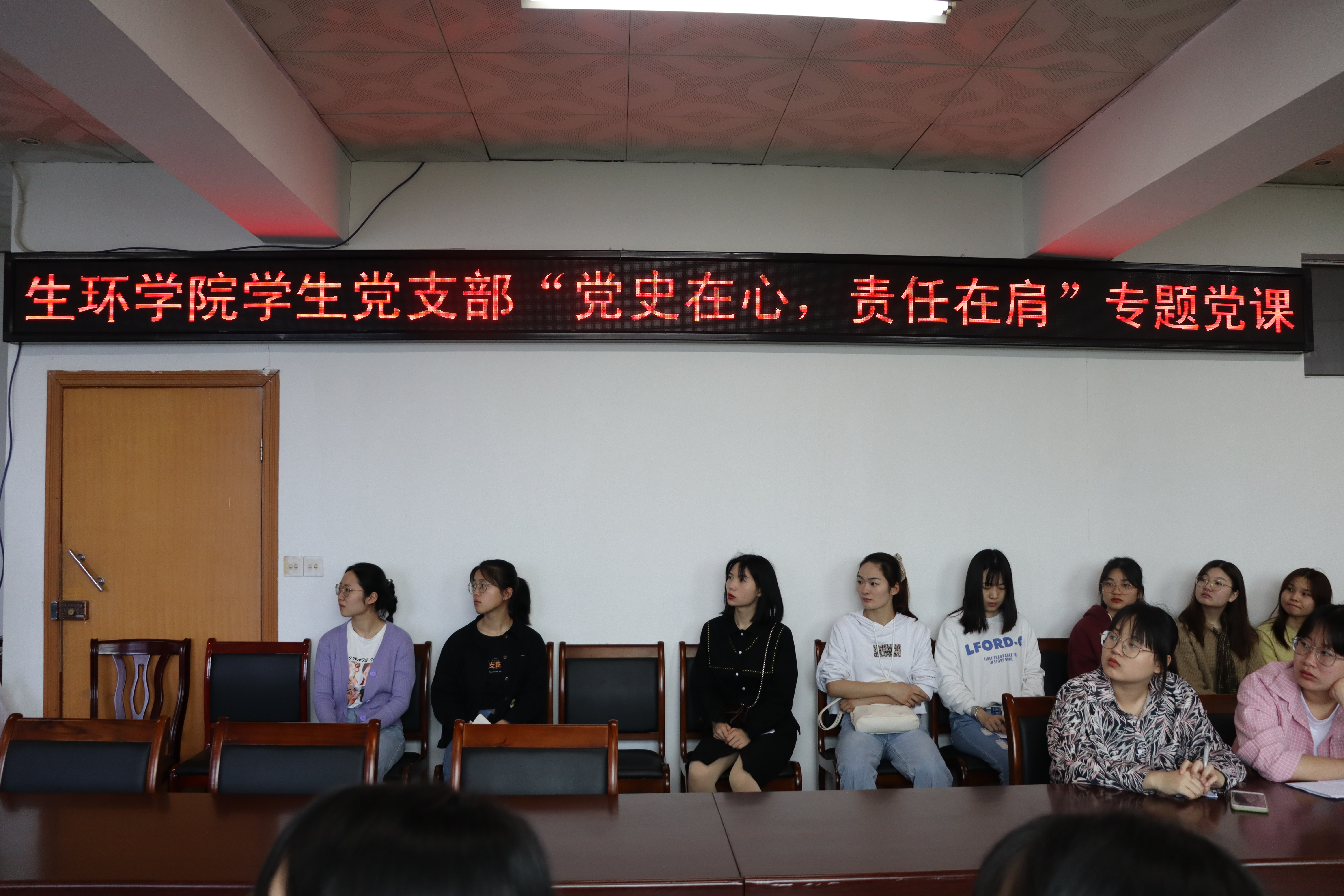 2021年5月24日上午九时许,生命科学与环境学院在西校区千禧楼六楼党员活动室开展“党史在心,责任在肩”专题党课暨2021届毕业生党员座谈会。生命科学与环境学院17级全体学生党员到会聆听。