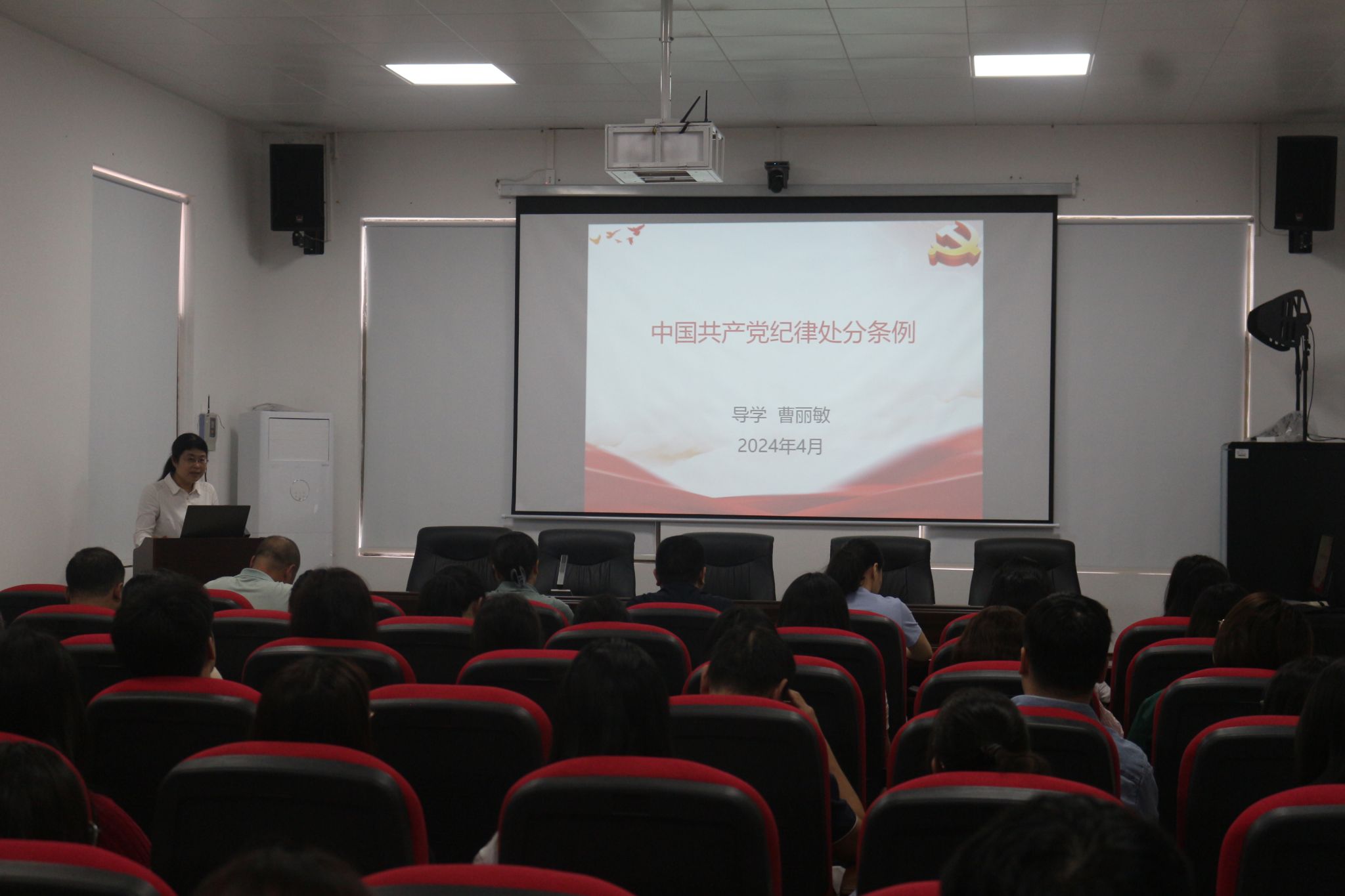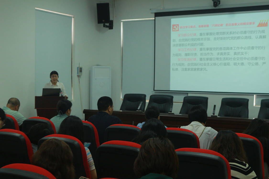 4月24日下午,SUNBET申搏官方网站党总支在西校区计算机楼417学术报告厅开展了党纪学习教育活动。党总支书记曹丽敏带领全体师生党员认认真真、逐章逐句学习了《中国共产党纪律处分条例》。