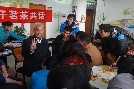 陈冰心教授就自身的人生经历与作画心得与在场的同学做了分享与交流。陈教授是一位朴实无华、和蔼可亲的老人,他用一颗炽热的爱国之心,书画着民族精魂,成为颇负盛名的国画大师。同时,他又热心公益事业,自觉承载着的社会责任和历史使命,他认为艺术要反映时代精神,要为人民大众服务。虽已84岁高寿,陈教授看起来依然神采奕奕,目光矍铄。交谈中,陈教授向同学们表达了自己愿继续发挥余热,为社会服务,书写生命光辉的人生信念,让在场同学们都备受鼓舞。结束时陈教授从自己的书画作品中选出几副赠送给在场同学,并与大家一起合影留念。