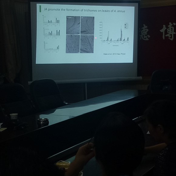 江博士的报告结束后,老师与同学们就如何提高青蒿素的产量展开了深入的交流与探讨。学术沙龙的举办促进了不同专业之间的交流,为团队融合打下良好的基础。