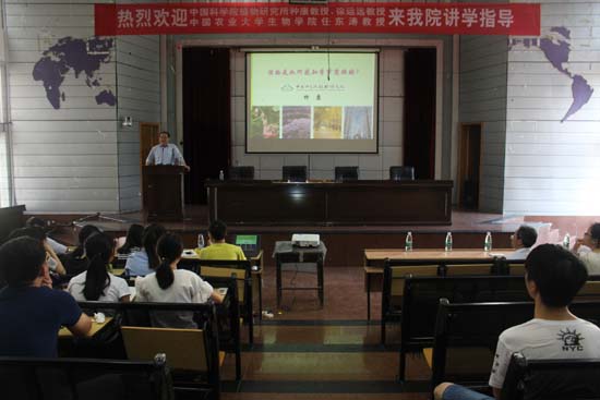 6月21日上午,中国科学院植物研究所种康教授、中国农业大学生物学院任东涛教授应邀在申搏官网西校区学术报告厅为生命科学与环境学院、化学与材料科学学院部分师生做学术报告。报告会由南岳学院院长王芳宇教授主持。