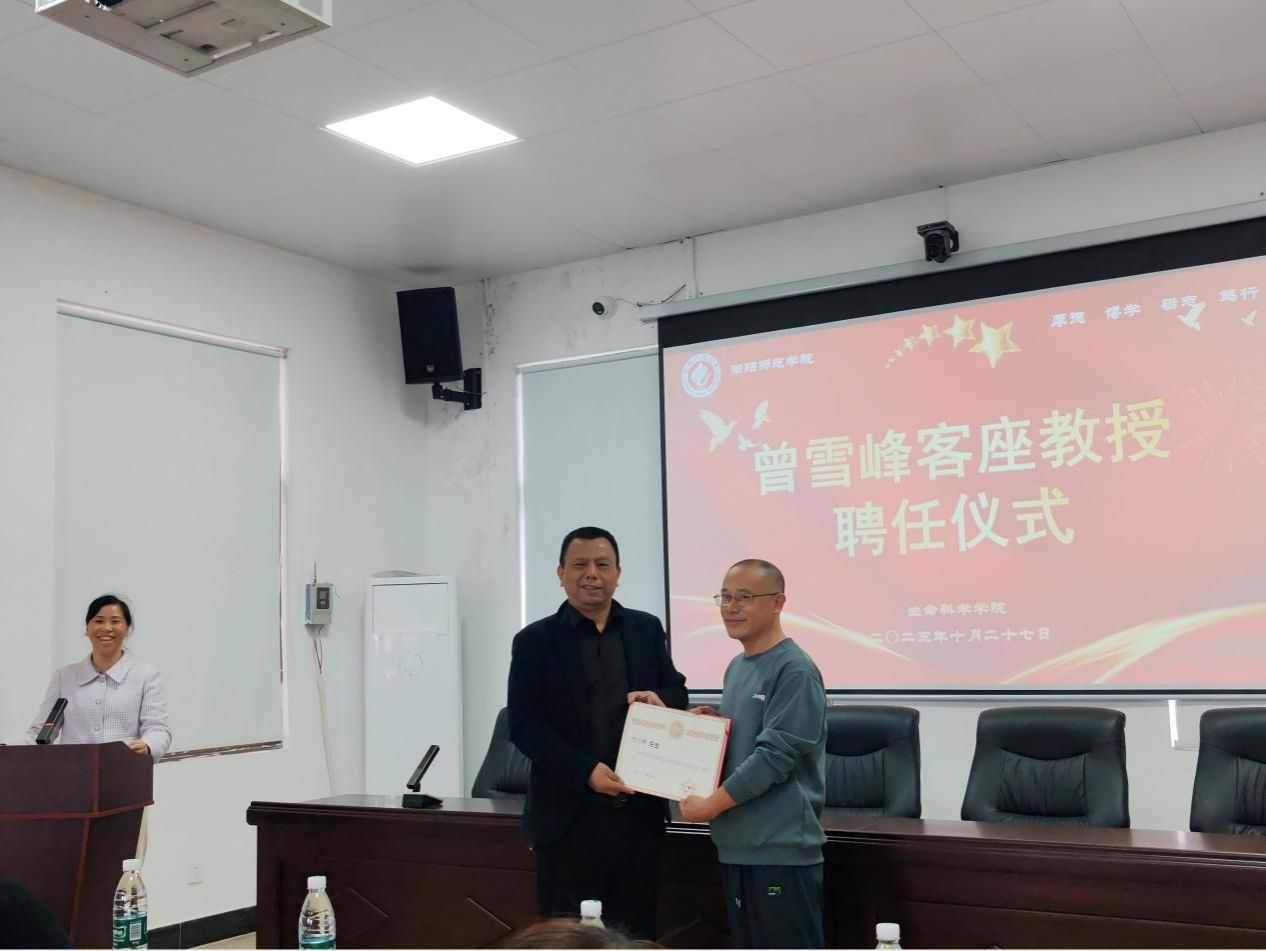 2025年10月27日,SUNBET申搏官方网站代表SUNBET申搏官方网站在西校区至善楼417会议室为贵州大学曾雪峰教授隆重举办受聘仪式。副院长陈晓华教授主持仪式。院长易诚教授为曾教授颁发客座教授证书,宣布曾教授正式成为SUNBET申搏官方网站的客座人才。