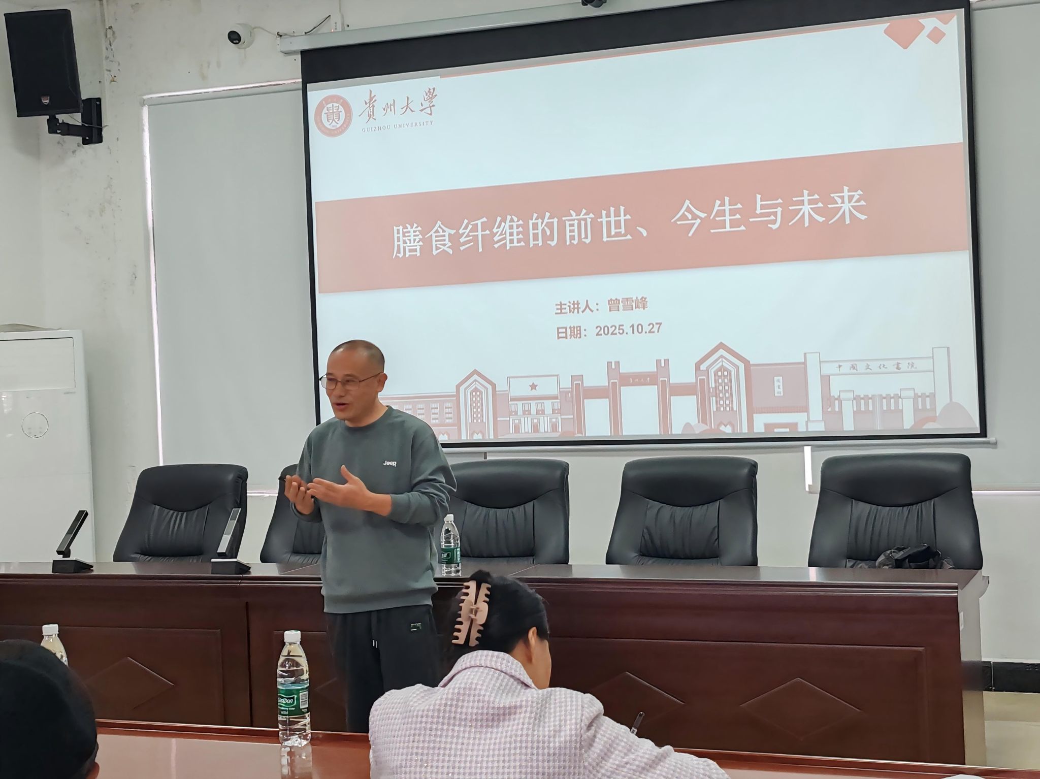 曾雪峰教授是食品科学领域资深学者,主持多项国家级、省级科研项目,发表SCI论文60余篇,其中中科院1区38篇,科研经验丰富。在营养科学的浩瀚星空中,膳食纤维是一颗既传统又充满未来感的星辰。此次会议围绕膳食纤维的三维度展开 :(一) 前世:解析膳食纤维从“无营养杂质”到被关注的认知历程,结合粮油副产物案例说明其在传统饮食中的隐性作用。(二)今生:阐述其调节肠道微生态、控血糖血脂、辅助体重管理等健康价值,介绍通过发酵改性等工艺提升其利用率的研究。(三)未来:展望其在医药载体、可降解材料、精准营养等跨界应用,分享从米糠、豆渣中提取功能性膳食纤维的技术突破。 这次讲座不仅是膳食纤维的“历史复盘”与“未来展望”,更是一次食品科学与营养健康的跨界对话。曾教授的讲座为申搏官网食品、营养相关学科发展提供方向参考,也有利于学科跨界创新。