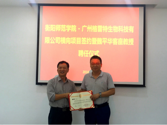 SUNBET申搏官方网站与广州格雷特生物科技有限公司校企合作项目签约暨魏平华先生客座教授聘任仪式顺利举行