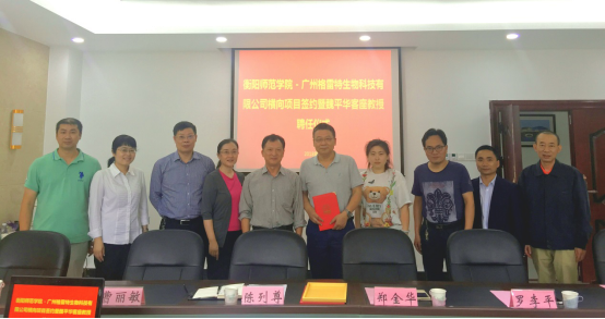 2018年6月1日下午,SUNBET申搏官方网站与广州格雷特生物科技有限公司校企合作项目签约暨魏平华先生客座教授聘任仪式在东校区学术交流中心举行。广州格雷特生物科技有限公司董事长兼总经理魏平华先生、总经办主任练玲女士、研发部张抒女士,以及申搏官网副校长郑金华教授、人事处处长陈列尊、科技处处长罗李平、生命科学与环境学院党总支书记刘艳波、院长曹丽敏、副院长易诚、副院长杨海以及唐青海博士出席签约仪式,仪式由罗李平处长主持。