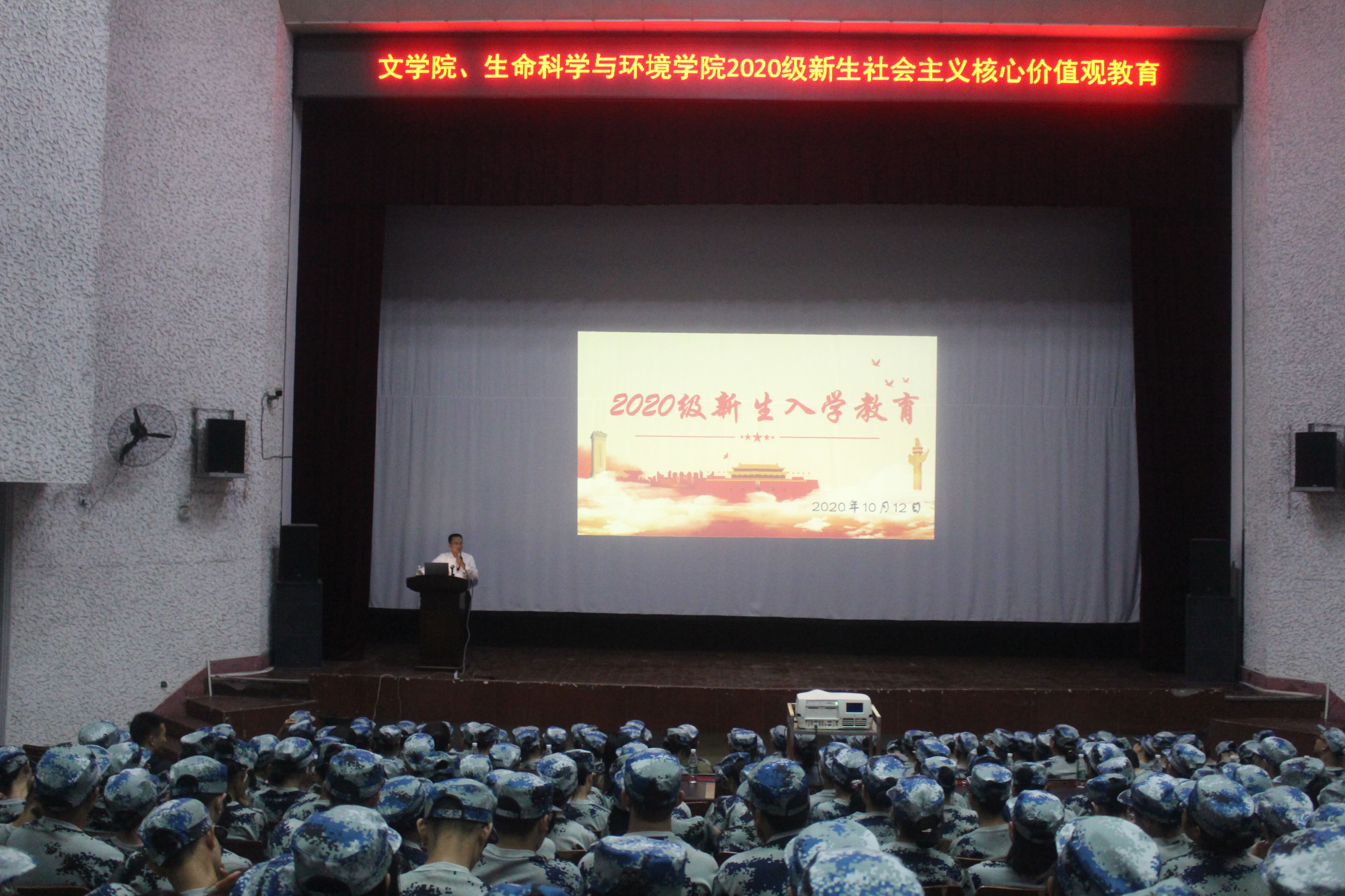 为增强学生对社会主义核心价值观的理解,加强学生思想道德建设,申搏官网与文学院于10月12日晚七点在排演厅展开了2020级新生社会主义核心价值观教育,申搏官网党总支书记彭晖、党总支副书记蒋湘祁、文学院党总支书记张云峰、党总支副书记何颖,以及双方学院的辅导员老师莅临本次会议。会议由彭晖书记主持,学生工作处处长蒋杰为主讲人。