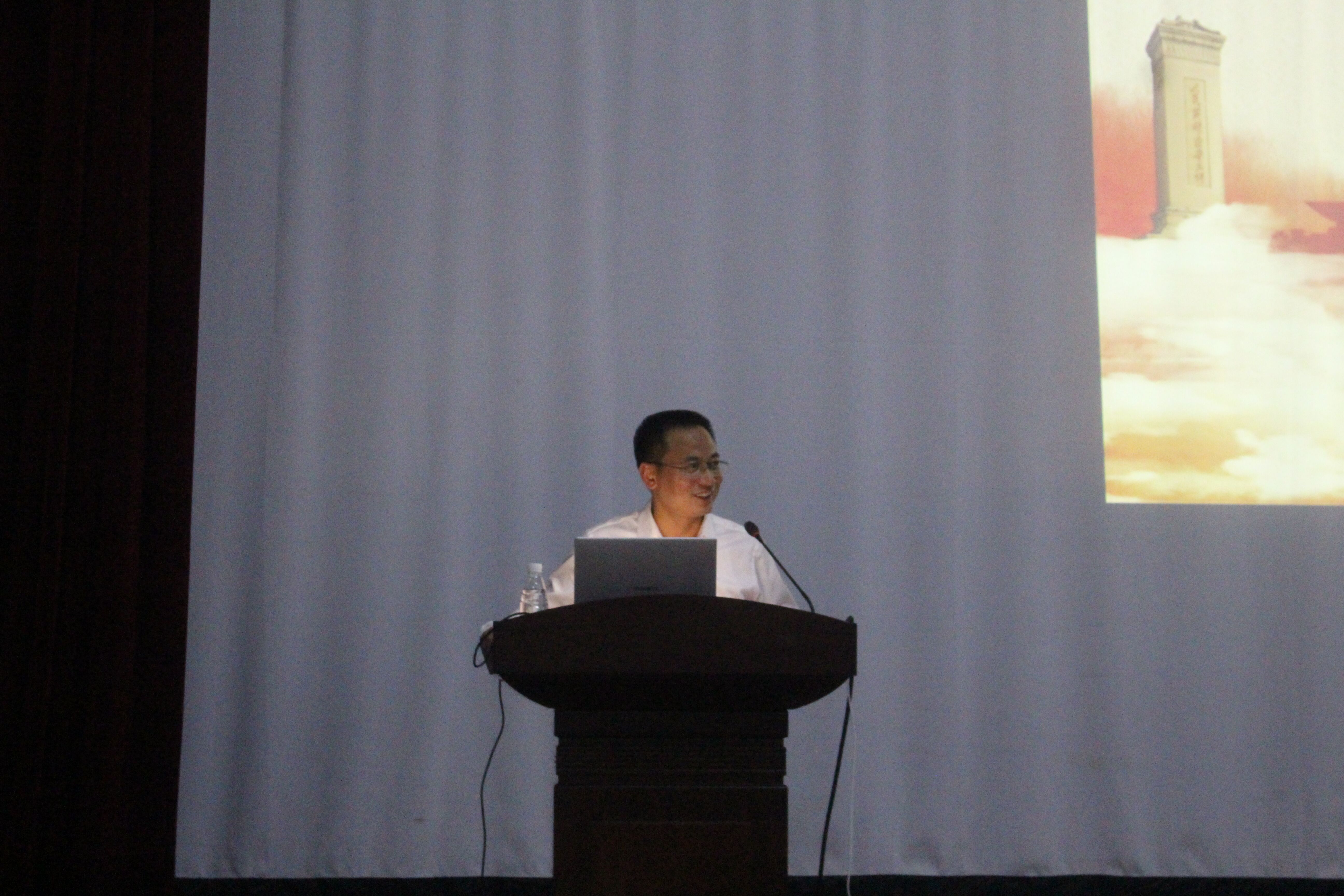 彭晖书记首先表示对新同学们的到来的欢迎,随后介绍了蒋杰处长。接着讲座开始,蒋处长主要从三个方面入手,开始了今晚讲座的主题解说。