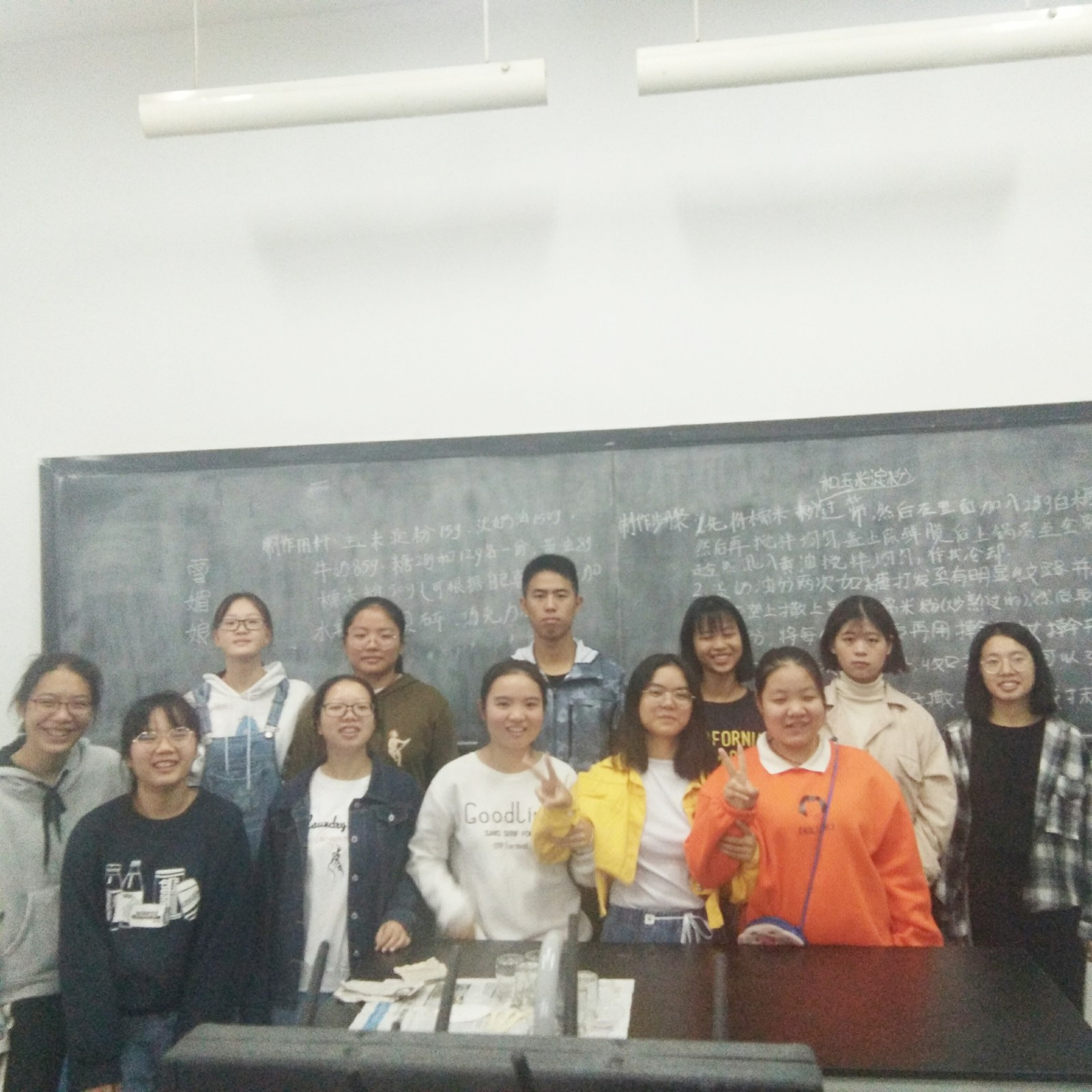 活动开始前,技术部成员在黑板上提前写好了制作雪媚娘所需要的材料以及简单的制作步骤。教学过程中,技术部成员在制作示范的同时还说明了制作雪媚娘的注意事项。在等待雪媚娘出炉的过程中,技术部成员为大家普及了一些营养知识,让学员们更深入地了解雪媚娘的制作以及它的营养价值等等相关知识。技术部成员示范一遍之后,学员们便开始自己动手制作,技术部成员在一旁耐心地进行指导。两轮制作完毕后,大家便一起享受了美食并合影留念。