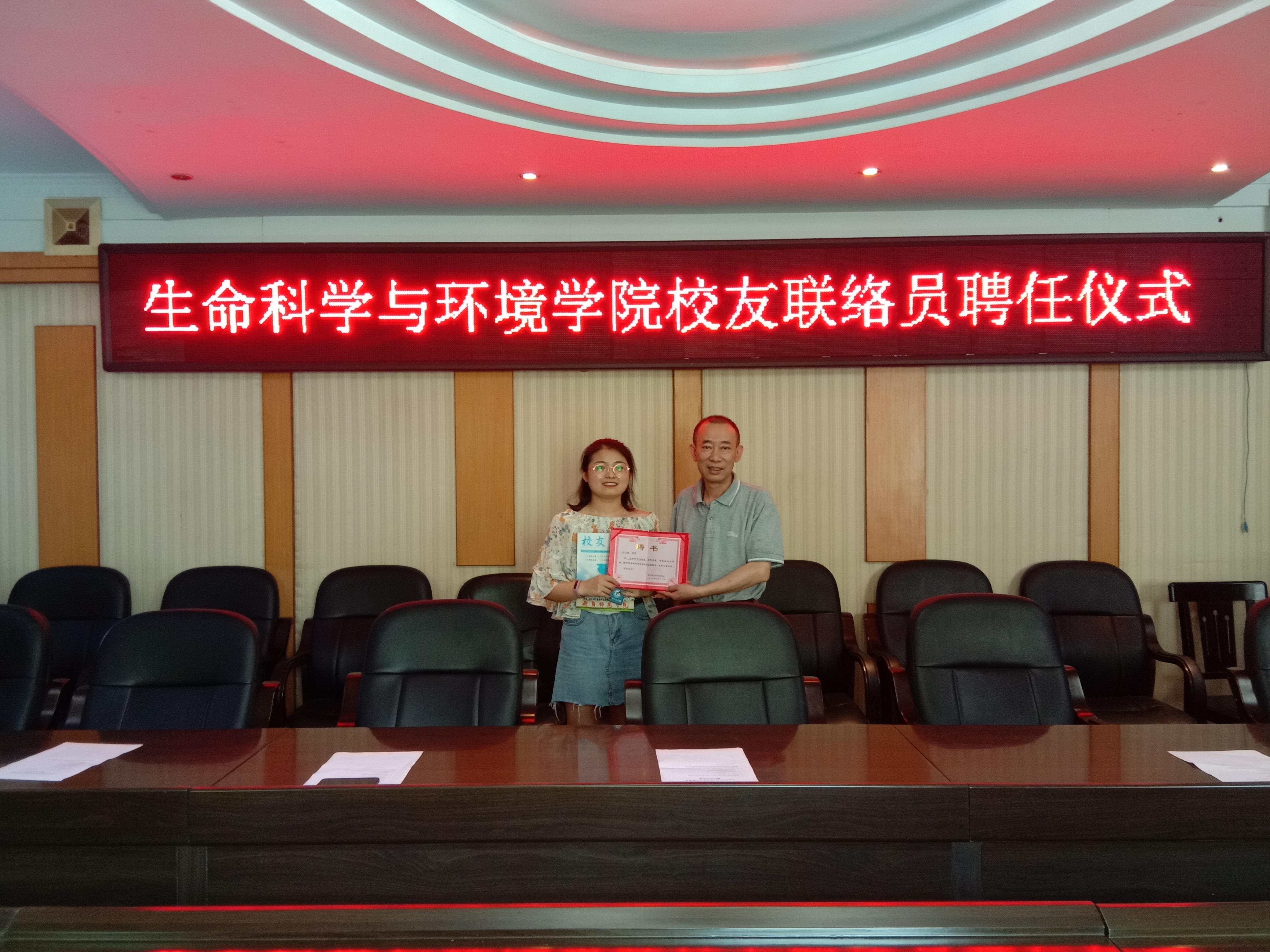 6.17日上午,生命科学与环境学院校友联络员聘任仪式在西校区行政办公楼308会议室成功举办,党总支书记刘艳波,院长曹丽敏,副院长易诚、杨海及相关老师参加了聘任仪式,会议由副院长杨海主持。