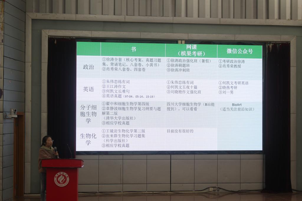 5月8日下午14:30,学院在西校区模拟法庭开展考研经验交流会,生命科学与环境学院党总支书记刘艳波,院长曹丽敏,副院长杨海、易诚,团委书记刘树芬,辅导员许若霏老师以及各专业老师莅临本次交流会。何婷婷,伍牧锋等7位优秀考研学生代表作为嘉宾来到现场,与申搏官网16级,17级有意向参与考研的学生分享考研经验。