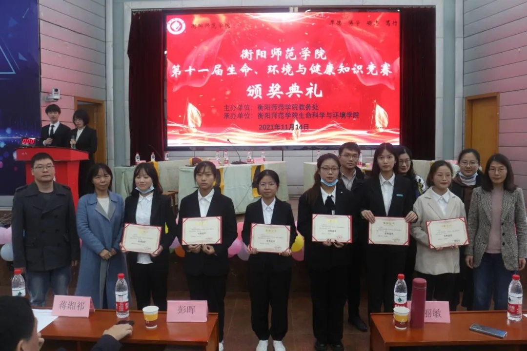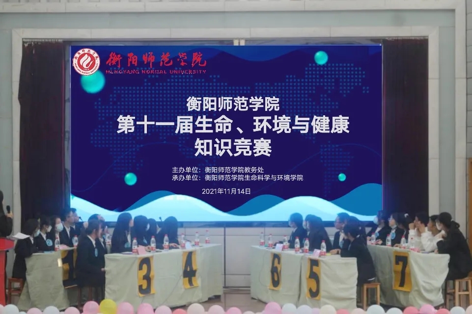 为活跃校园文化氛围,培养同学们的竞争意识和创新精神,进一步培养同学们珍爱生命、热爱生活的人生态度。2021年11月14日,由SUNBET申搏官方网站教务处主办、生命科学与环境学院承办的“生命、环境与健康知识竞赛”在西校区模拟法庭正式举行。生命科学与环境学院书记彭晖同志,院长曹丽敏教授,副书记蒋湘祁同志,副院长易诚教授,副院长杨海老师,辅导员许若霏老师,系主任江伟民老师莅临比赛现场,南岳学院院长王芳宇教授莅临下午场比赛现场,专业老师担任本次大赛评委。