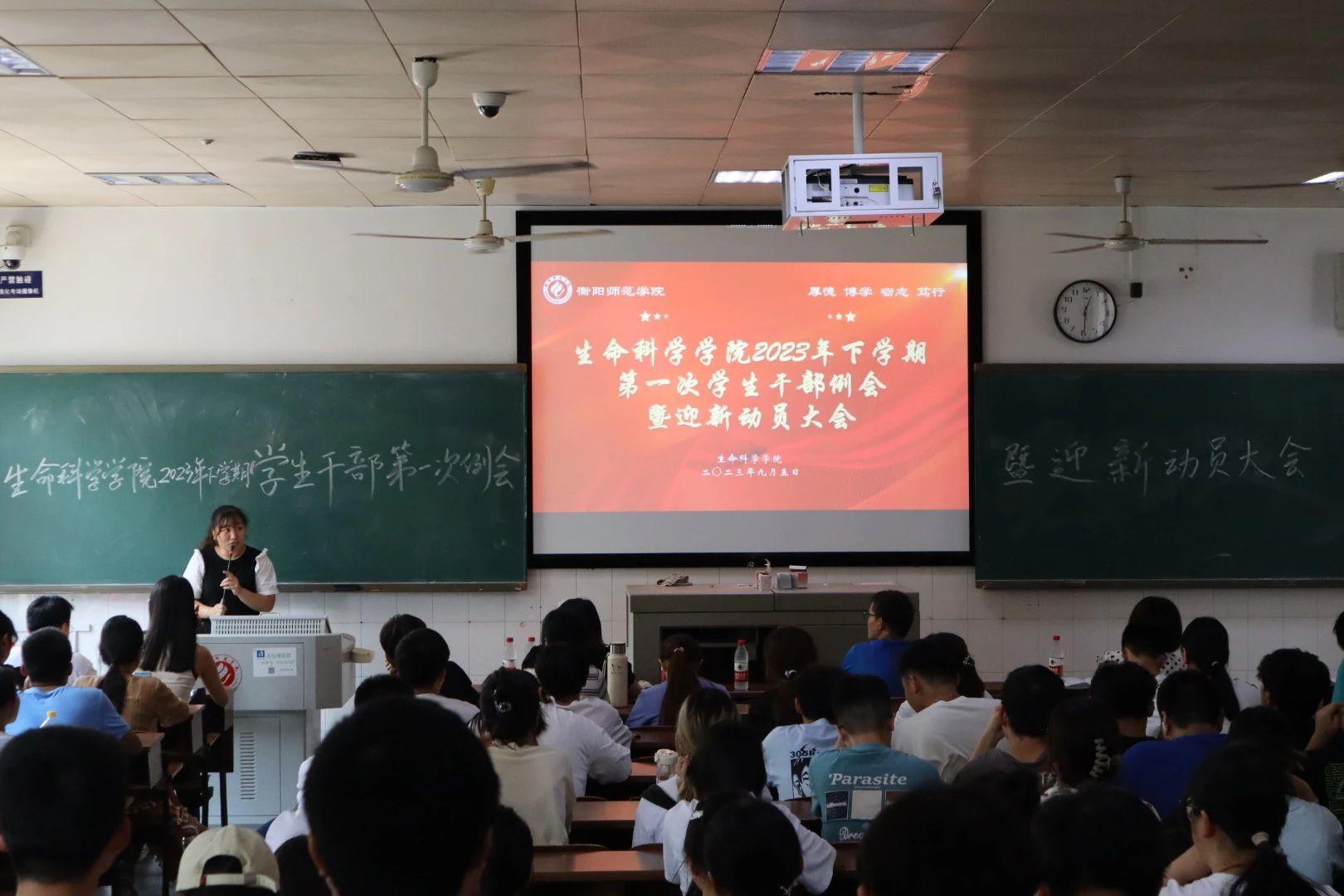 为确保新学期迎新工作顺利、有续、高效进行,9月5日中午12:30,申搏官网在行知楼202室召开SUNBET申搏官方网站2023年下学期第一次学生干部例会暨迎新动员大会。学院党总支副书记陈雅斐、团委书记刘树芬、辅导员唐乾翔、曹海鸥、付蓉老师出席会议,全体学生会成员、各班班委、23级新生班助参加会议。