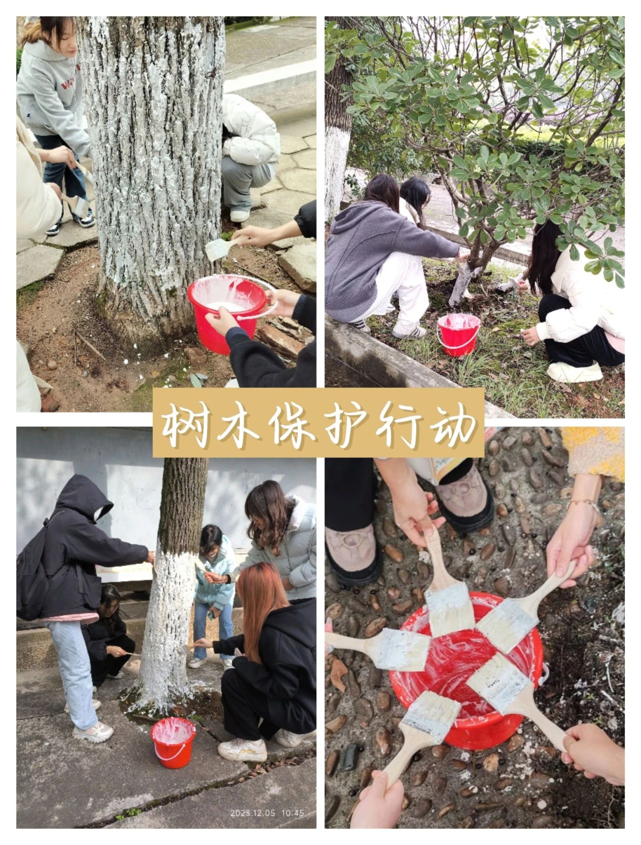 活动内容:志愿者们为SUNBET申搏官方网站西校区校园内的树木涂抹石灰水,为其防虫、保暖。