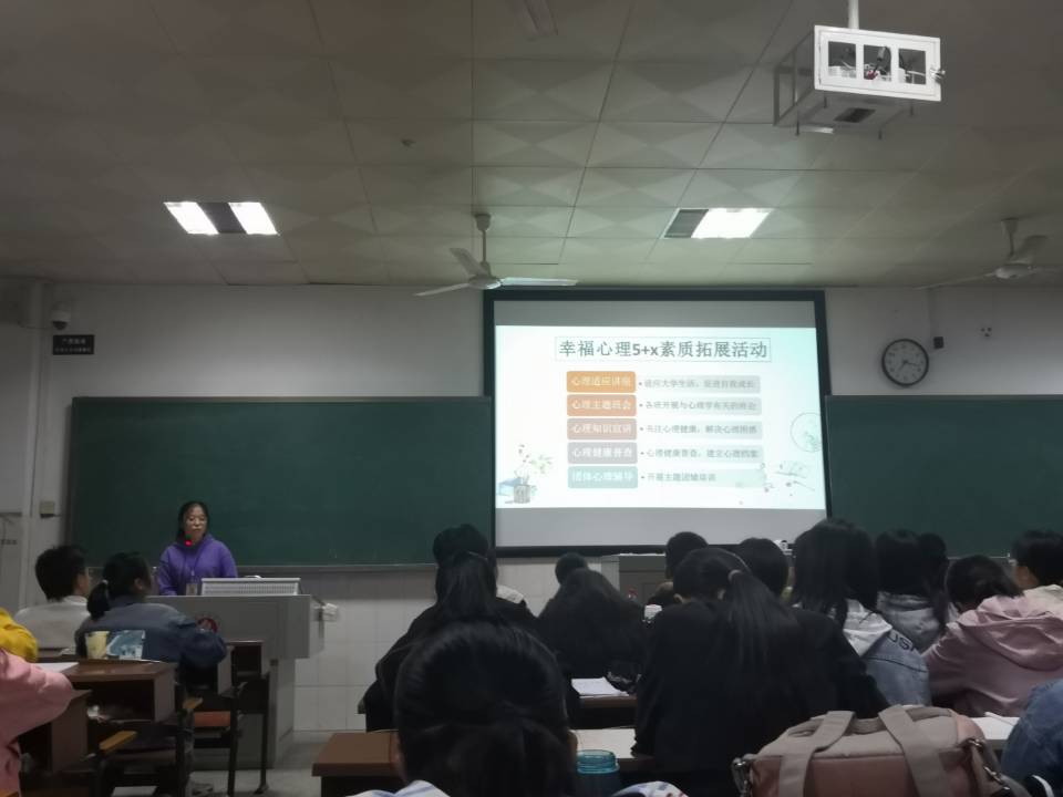 2019年11月4日19:00,由守望者心理工作室主讲的新生心理知识宣讲活动在西外语楼302和202教室举行,申搏官网19级全体同学到场参加。