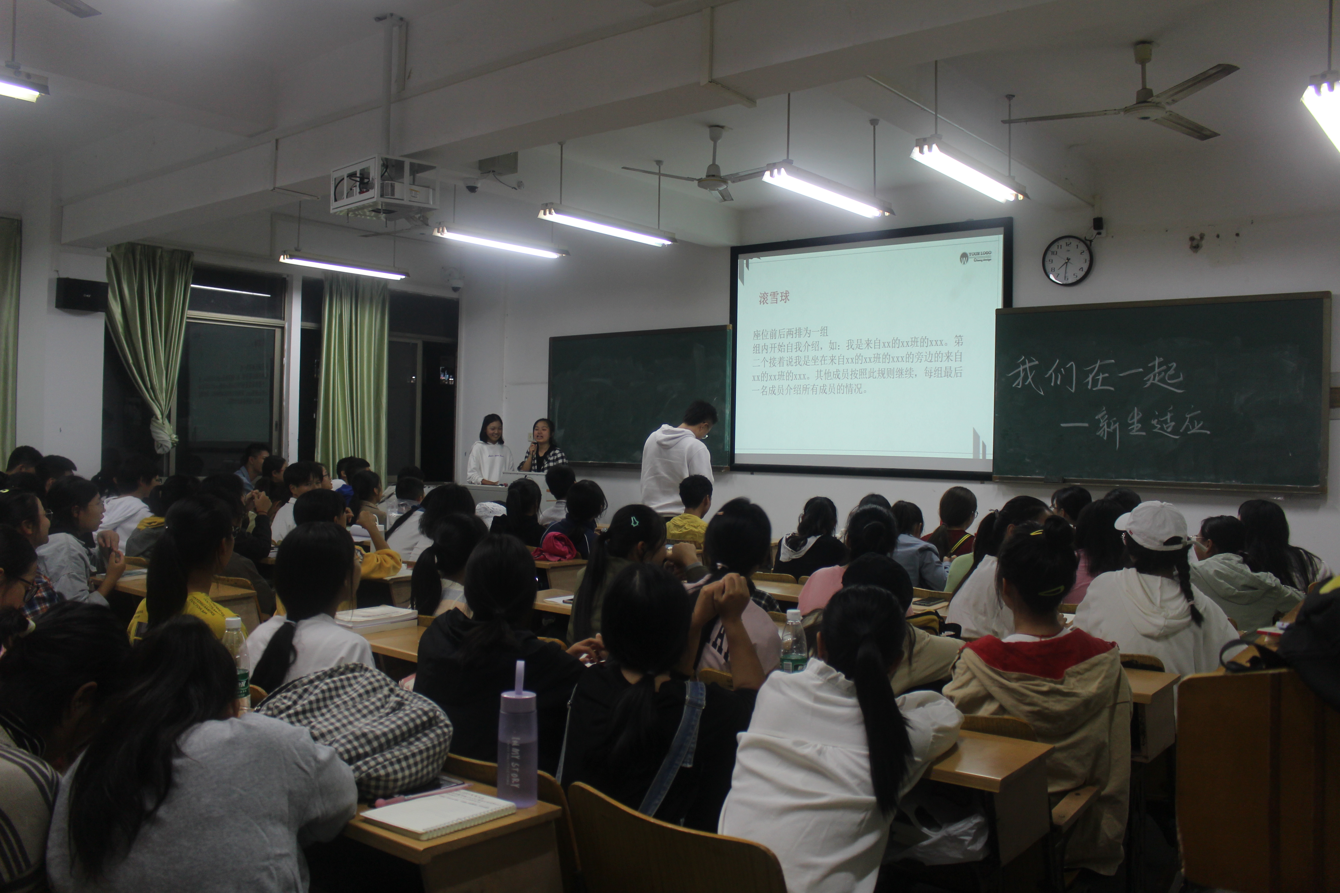 10月8日晚七点,学院开展“我们在一起——新生适应”心理团体辅导活动分别在外语楼102、301、612、703等四个教室开展,院学生会心理健康教育活动部多名成员主持本次活动。