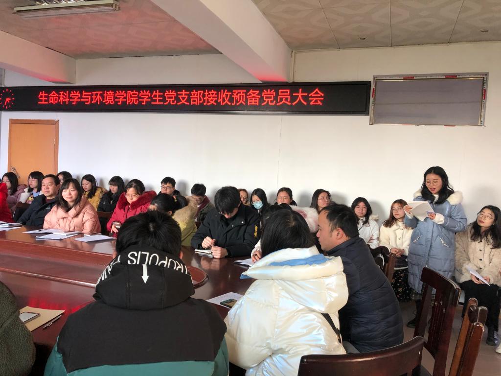 会议伊始,支部书记许若霏宣读到会情况及接收预备党员大会准备相关事宜。随后,唐淇等22名发展对象进行思想汇报,汇报了自己在思想、学习、工作和生活方面的进步与不足,并作了总结和反思,表达入党志愿和决心。入党介绍人依次介绍发展对象的主要情况,并对其能否入党表明意见。接着,预备党员回避,与会有表决权的党员以无记名投票方式进行投票表决。经过公平公正的统票监票计票,学生支部纪检委员徐晴一一宣读票决结果。最后,大会一致同意接收唐淇等22位新党员同志为预备党员,并对其进行为期一年的预备期考察。