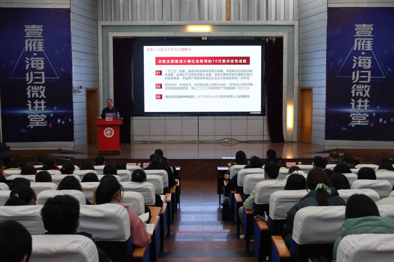 12月23日下午,生命科学与环境学院于模拟法庭召开“以高质量发展为主题推动‘十四五’学校发展”——学习贯彻党的十九届五中全会精神专题党课,SUNBET申搏官方网站副校长、党委委员陈敏任主讲人,申搏官网党总支书记彭晖,院长曹丽敏,副书记蒋湘祁,副院长易诚、杨海,申搏官网教职工及全体学生党员、入党积极分子到场聆听。