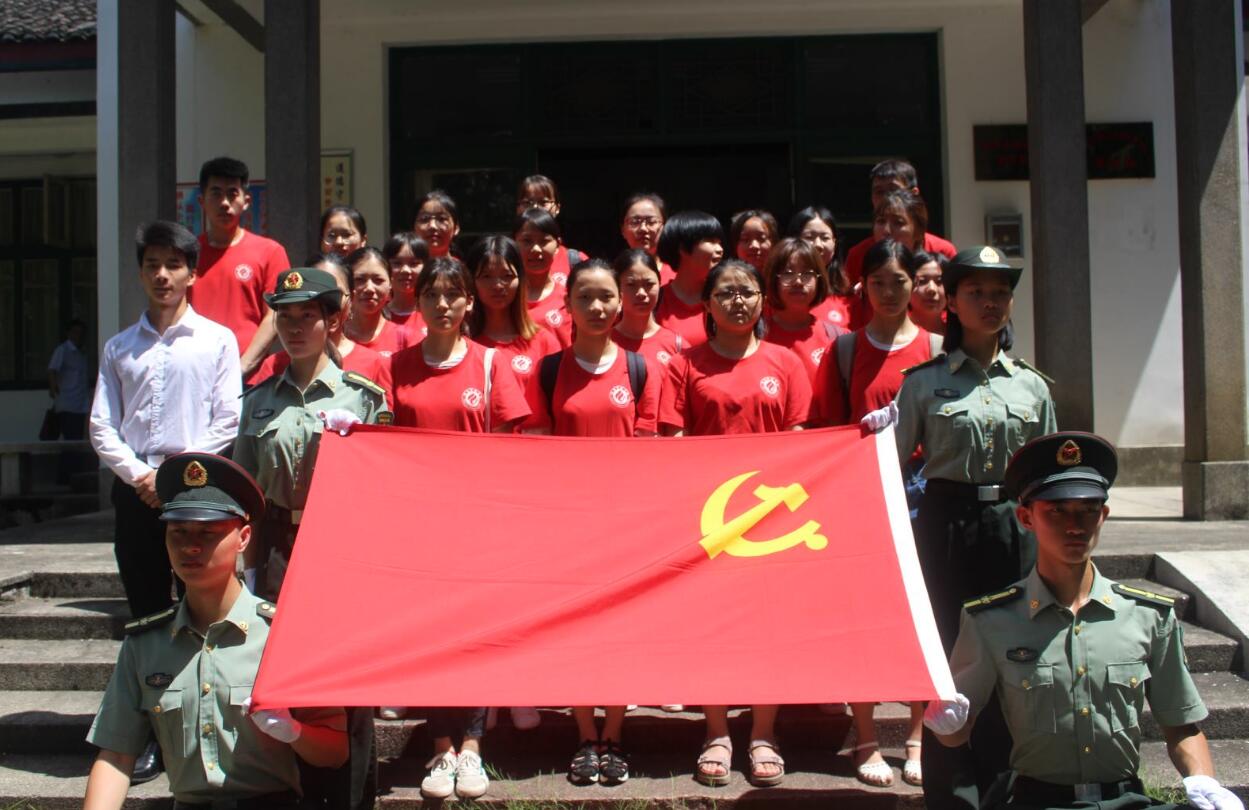 随后,生命科学与环境学院学生党支部书记何海婷代表学生党员发言。她郑重承诺将时刻以一名党员标准严格要求自己,不断展现一个新时代学生党员的先进风采,不断努力为社会主义建设贡献自己的一份力量。2018年新发展党员代表黄淑琴说,预备党员的身份对自己是一种光荣的鼓励和鞭策。作为党的后备力量,自己将以优秀党员同志为榜样,努力为人民服务。最后,老党员代表张达莉带领全体党员在雕像前庄严宣誓,面对党旗,大家握拳齐肩举手,用坚定的声音抒发对党忠诚的决心。