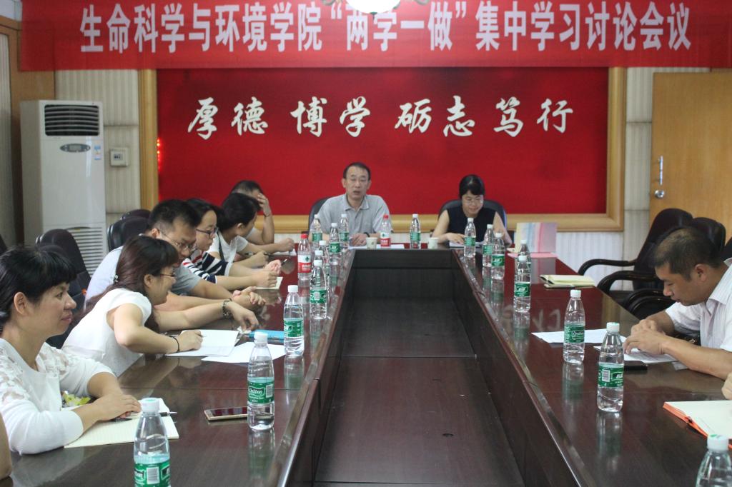 根据《SUNBET申搏官方网站“两学一做”学习教育实施方案》有关要求,生命科学与环境学院党总支于2016年9月1日~3日在行政楼三楼会议室举行“两学一做”集中学习讨论会。全院23名教工党员积极参加,认真学习,热烈讨论,主动发言。