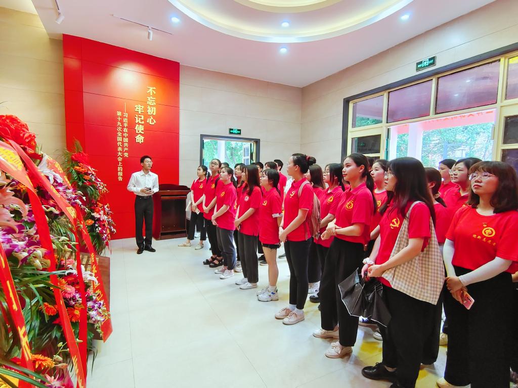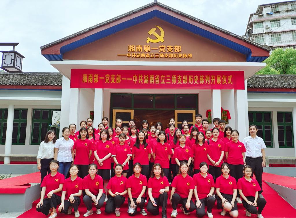 为推进党史学习教育,持续深化爱国主义教育,发挥党员带头作用,力争做到“学史力行”,申搏官网学生党支部于2021年6月30日前往湘南第一党支部--中共湖南省立三师支部历史陈列馆开展纪念“七一”建党100周年主题党日活动。申搏官网党总支书记彭晖、副书记蒋湘祁、学生党支部书记许若霏带领57名学生党员参与了此次活动。党总支副书记蒋湘祁担任主持人。
