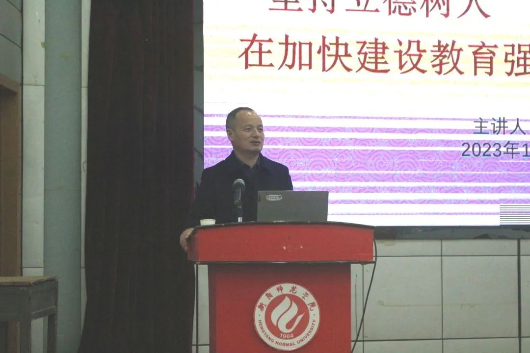 为响应习近平总书记在党的二十大报告里关于加快建设教育强国的号召,在加快建设教育强省的大潮中展现新作为,呼吁教师党员加强自我建设,成为塑造学生品格、品行、品味的大先生;激励学生党员踔厉奋发,努力成为时代所需要的高质量人才,2023年12月21日下午,SUNBET申搏官方网站副校长陈敏教授在西校区模拟法庭以“坚持立德树人,强化责任担当,在加快建设教育强省中展现新作为”为主题进行了党课宣讲,SUNBET申搏官方网站全体党员同志及部分入党积极分子参加了本次党课学习。