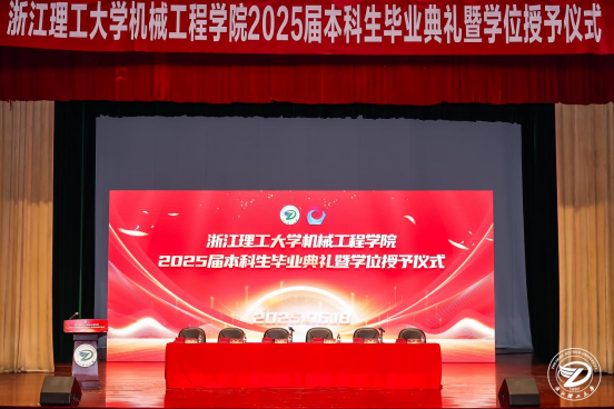 6月18日下午,永利集团官网入口永利集团官网入口2025届本科生毕业典礼在学生活动中心小剧场举行。学院党政领导班子、各系主任、三办主任、毕业班班主任、教师代表、校友代表、全体辅导员、2025届全体本科毕业生及家长齐聚一堂,共同见证300余名学子圆满完成学业,从浙理机械扬帆启航。典礼由学院党委副书记、纪委书记陆秋萍主持。