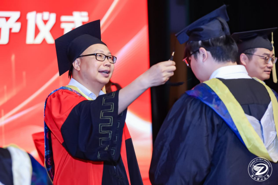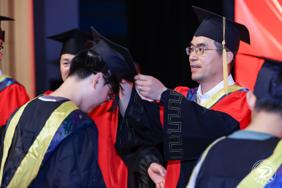 学位授予仪式上,李秦川、叶文、潘骏、向忠、金玉珍、李昳、孙良7位导师为毕业生扶正流苏、颁发学位证书。流苏右拨向左的瞬间,象征着学生们正式完成学业转身,以工学学士之志奔赴山海。全场掌声如潮,定格青春最闪耀的注脚。