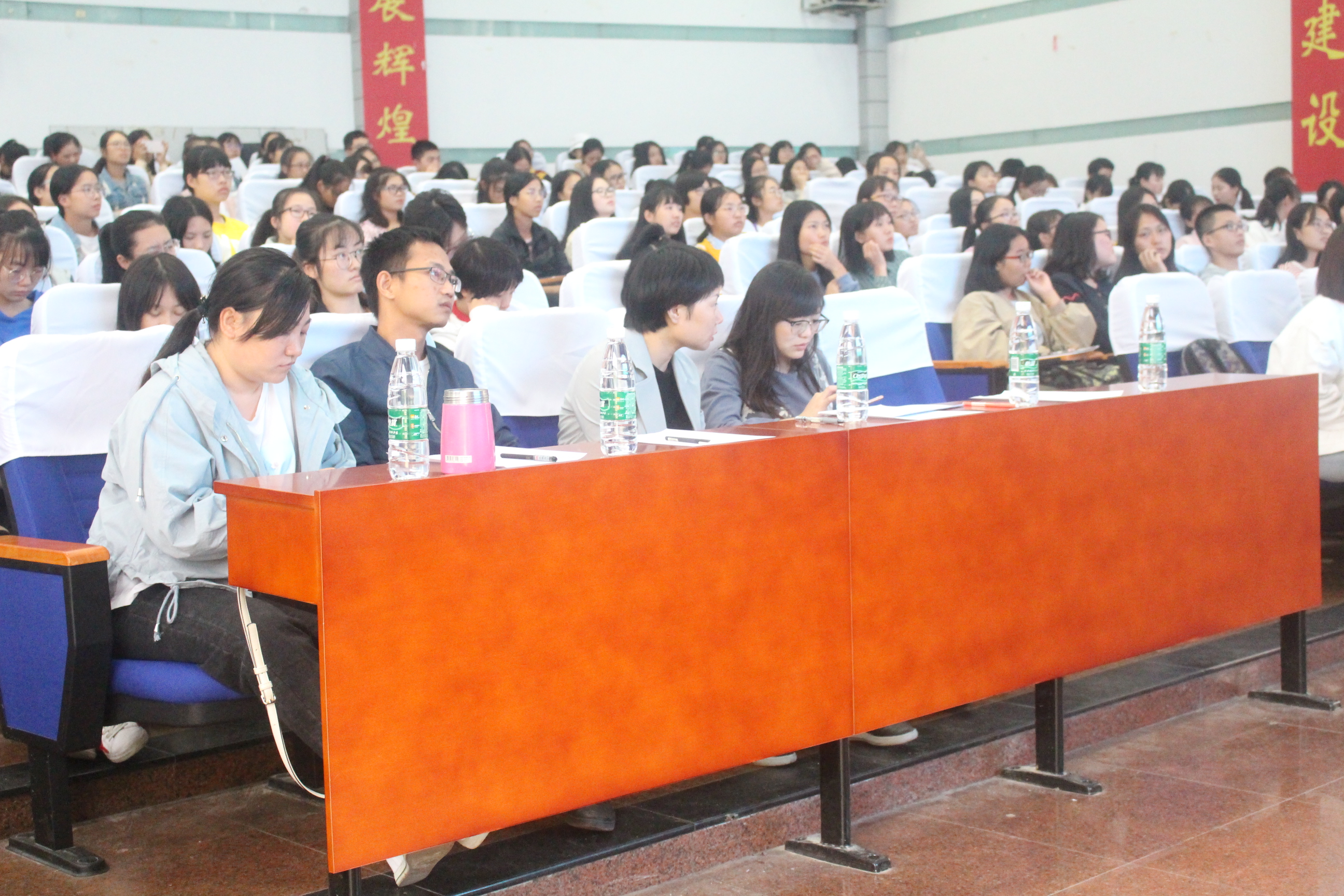 本次大会本着公平公正的原则,各班贫困生代表按国家励志奖学金四条评选指标即“思想品德、学习情况、家庭经济情况、校级校规的遵守情况”参与投票选举,决定最终奖学金的得主。选手们身着正装,依次上台答辩,叙述自身的优秀事迹,展示丰富实践成果,简介自身家庭情况,从多方面展现自我的精神风貌,或慷慨激昂,或娓娓道来……现场不时响起阵阵掌声。