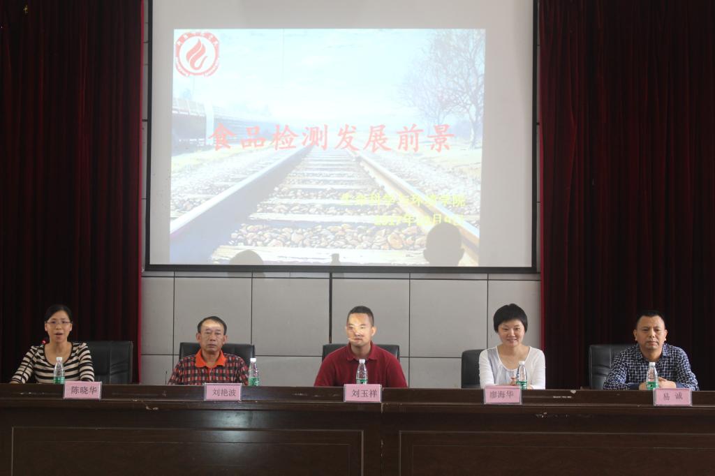 2017年10月9日下午3点,申搏官网07级生物科学专业学长刘玉祥在西校区模拟法庭举办了一场主题为 “食品检测发展前景”的学术讲座。出场的领导有刘艳波书记、廖海华书记、易诚院长、李建周、宾冬梅和陈晓华老师。申搏官网16级生物科学和食品科学专业的全体学生参加讲座。