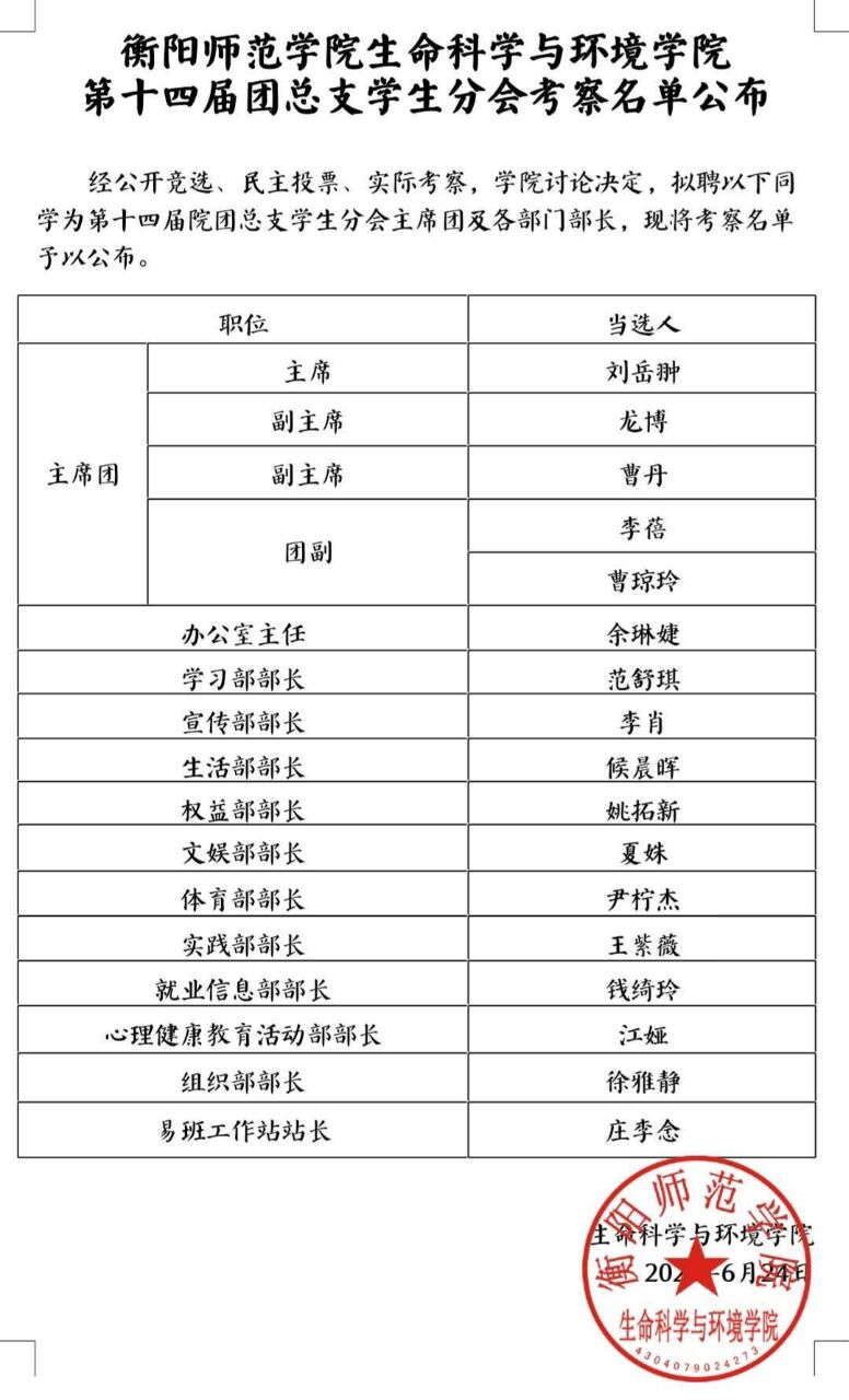 大会第六项,彭晖书记宣布第十四届分团委学生会成员名单。学生干部上台领取聘用证书。