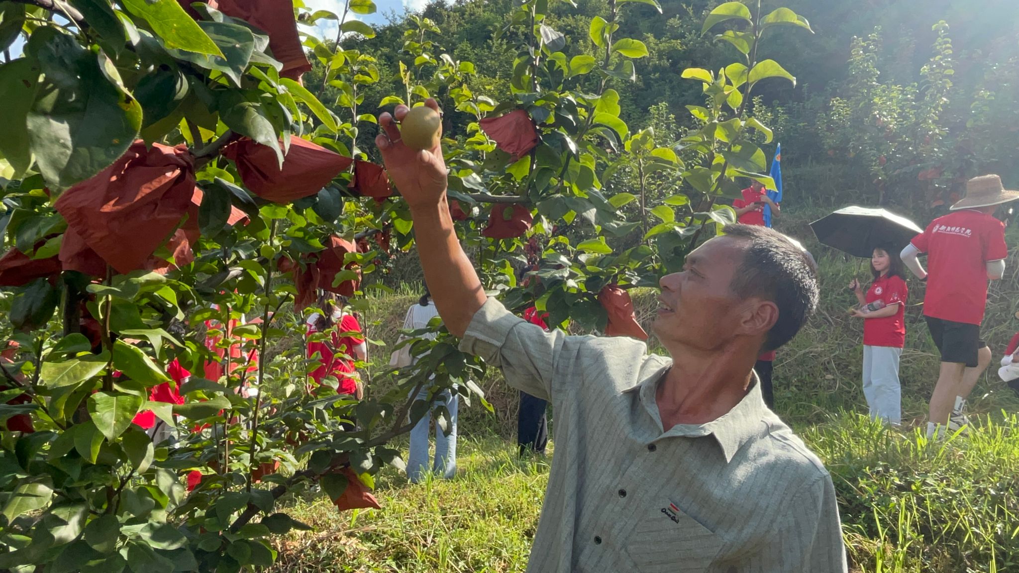 “芬享”实践团并未止步于此。他们为当地果农创新性地引入了直播带货这一新兴销售模式。团队成员们化身主播,走进果园,与观众面对面交流,生动展示秋月梨的采摘过程、口感特点及营养价值,吸引了大量粉丝的关注和购买。这种直观、互动的销售方式不仅打破了传统销售模式的局限,也极大地拓宽了秋月梨的销售渠道和市场份额。