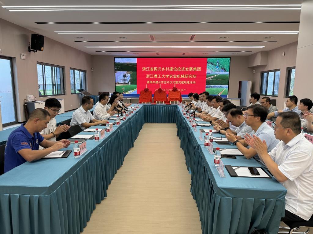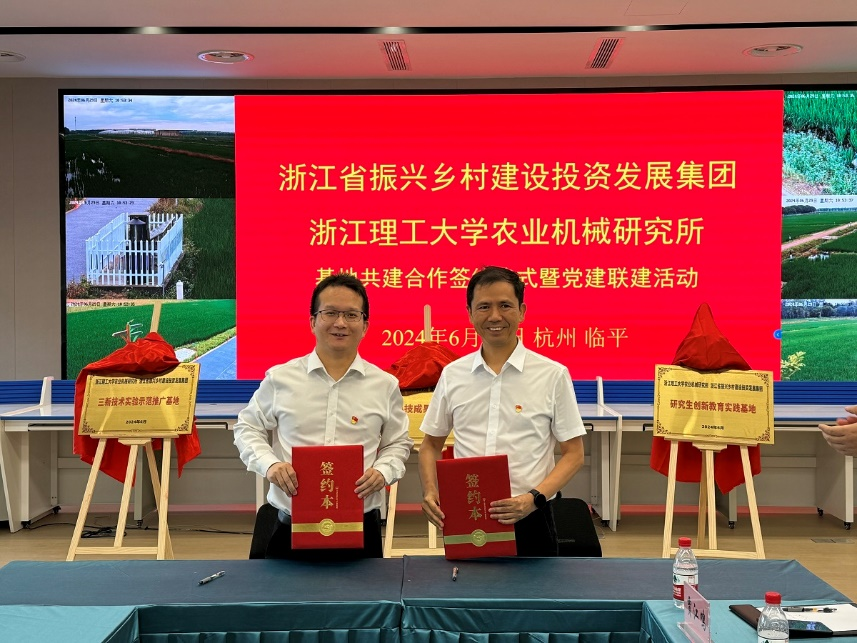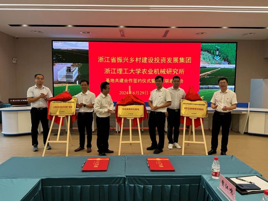 随后举行了永利集团官网入口农业机械研究所、浙江省振兴乡村建设投资发展集团科技成果转化基地、三新技术实验示范推广基地、研究生创新教育实践基地的揭牌仪式。双方代表郑重签订科技成果转化基地、三新技术实验示范推广基地、研究生创新教育实践基地共建协议,并为基地揭牌。