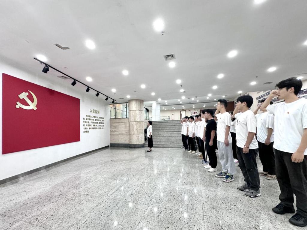 随后,在陆秋萍的带领下,新发展党员们在入党誓词墙前许下了庄严的誓言,“我志愿加入中国共产党,拥护党的纲领,遵守党的章程……”参加仪式的党员同志们面向鲜红的党旗,党徽在身、使命在心,他们举起右手代表扛起重担,坚定的眼神彰显对党的向往与忠诚,铿锵有力的誓言是对党和人民庄严的承诺也是共产党人坚定的信仰和崇高的追求。
